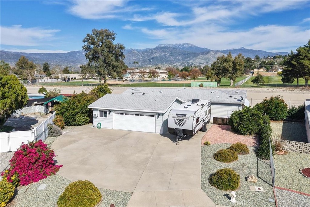 Beautiful turn-key manufactured home on a permanent foundation located in a desirable 55+ community with an incredibly low $50 per year HOA. This well-maintained single-story home offers 3 bedrooms and 2 bathrooms with approximately 1,538 sq ft of living space on a spacious 11,761 sq ft lot. Inside you’ll find an open floor plan designed for comfortable living and entertaining, featuring a bright living area and a kitchen with a center island that provides additional workspace. The home also includes a dedicated laundry room and an oversized AC unit for year-round comfort. The primary suite features its own private bathroom with dual sinks and a walk-in shower. Pride of ownership shows throughout this well cared for home. Step outside to enjoy the large backyard with fruit trees, a covered patio, and gorgeous mountain views, perfect for relaxing or entertaining. The detached 2-car garage offers great versatility and includes an additional craft room/workshop. A covered atrium walkway connects the garage to the home, adding convenience and charm. With its large lot, low-maintenance yard, scenic views, and quiet community setting, this property offers peaceful living with plenty of space to enjoy.