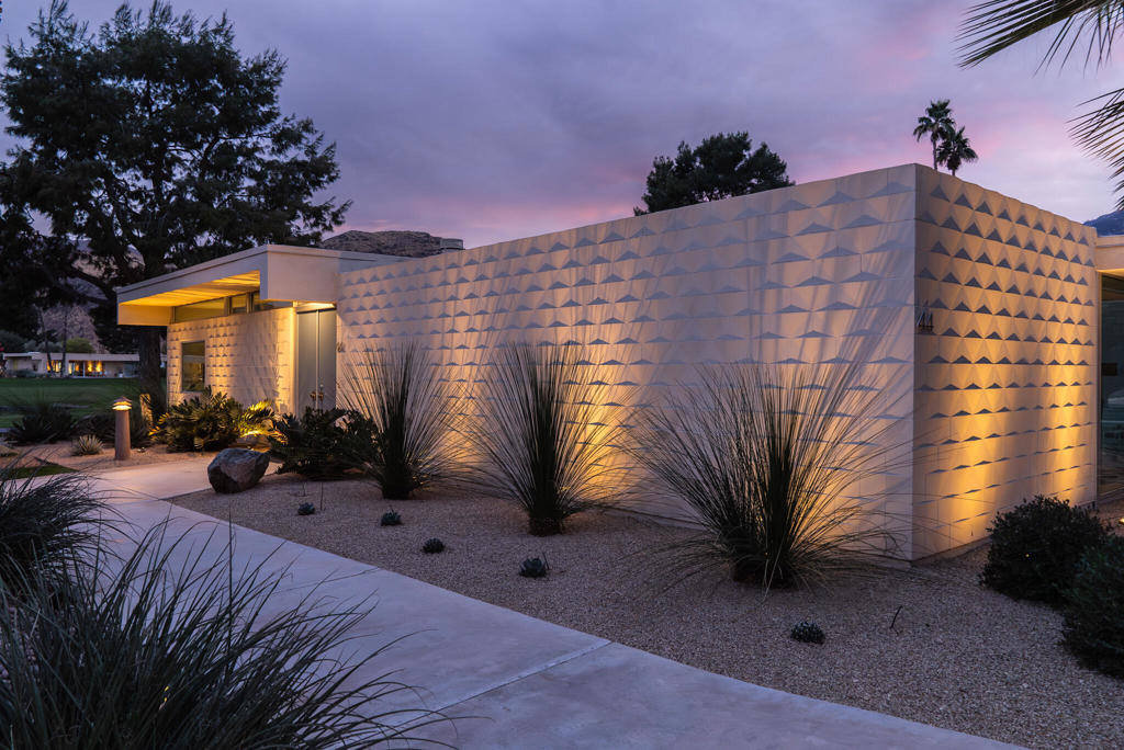 Ideally situated on the largest lake in South Palm Springs’ architecturally significant community of Seven Lakes Golf & Country Club, this beautifully redesigned 2-bedroom, 2-bath home with a den, office, and laundry room offers breathtaking southern-facing views of the mountains with the serenity of lakefront living. Located on the fourth green of the famous Ted Robinson-designed course, this tranquil and light-filled residence is surrounded by an abundant combination of unparalleled green-space, premium lakefront living and expansive openness.This stunning home has been completely rebuilt and updated, maintaining the original mid-century architectural integrity while ensuring a seamless and peaceful modern living experience. The quality details and premium craftsmanship are endless, including striking custom-designed iron fretwork that separates the living and den areas, while a redesigned gas fireplace with built-in linear limestone brick and walnut shelves creates a sophisticated and warm focal point in the living room. Other architectural details include linear air diffusers, custom walnut cabinetry, and a seamless integration of form and function for modern living. The gourmet kitchen boasts an upgraded Thermador appliance package, and the extended glass dining area is perfect for entertaining. The large outdoor private courtyard is perfect for year-round entertainment with ample room for dining and relaxing desert-style in front of the gas fire pit.