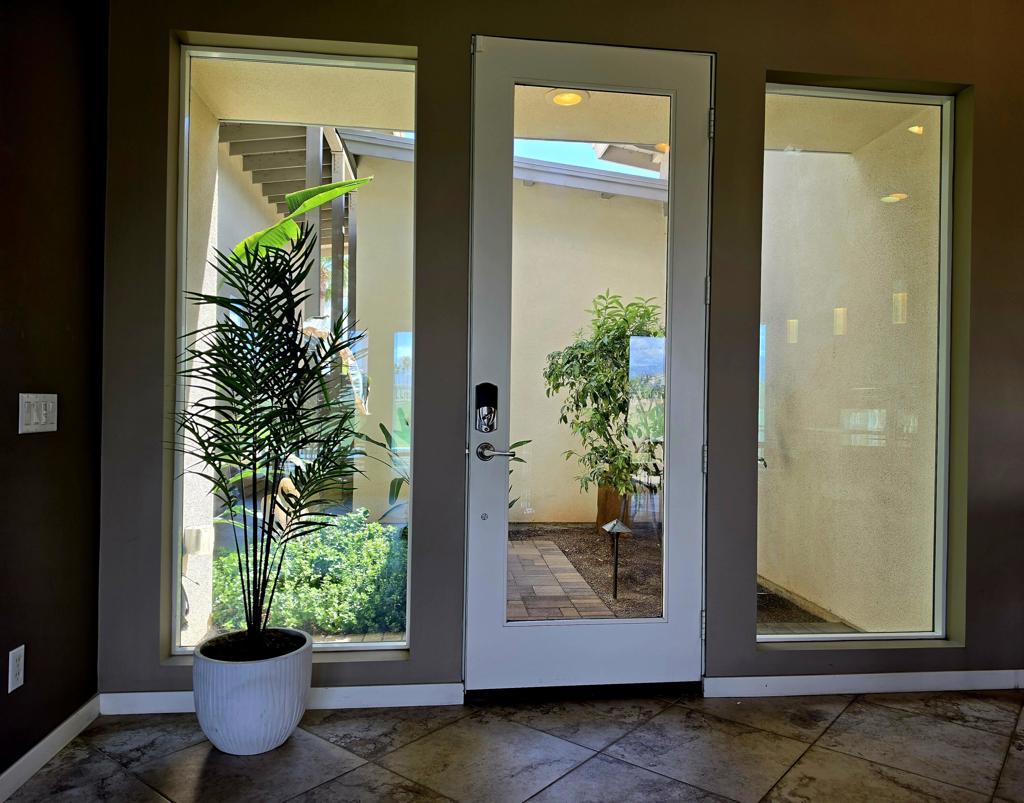 Escena modern home overlooking Golf course to the north and spectacular mountain views to the west from private back patio, and pool/spa.Front gate opens to atria garden area to front door entrance. You are welcomed by a large open living /dining/ kitchen area of casual living refinement. The entire back wall is made up of glass sliders to outside patio, pool/spa and golf course. Master ensuite also has slider to private patio. 2nd and third bedrooms have Jack and Jill bathroom, with 1/2 bath off the living room. Spacious kitchen with custom cabinets, state of the art appliances, and pantry,, including extra fridge in garage beyond laundry room. Large island/breakfast bar, with room for entertaining large family gatherings and/or relaxing on oversized couch, watching events and movies on large 70′ TV screen. The fireplace adds to the ambiance and for cooler nights enjoyment. Solar and energy efficiency throughout home. Escena Championship Golf Club and Clubhouse have spectacular views of Palm Springs and mountains beyond. Escena is strategically located within 10 miles of Palm Springs Airport, Hospitals, Casinos, 20 Championship Golf Courses, Major Entertainment Venues, Hiking & Biking trails , Waterpark. and , of course , many restaurants and shopping!May -Nov.2026 (6 months) = $3500 month11/15/26-4/30,/27 (4-6 months) $8400 mo.