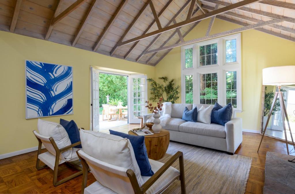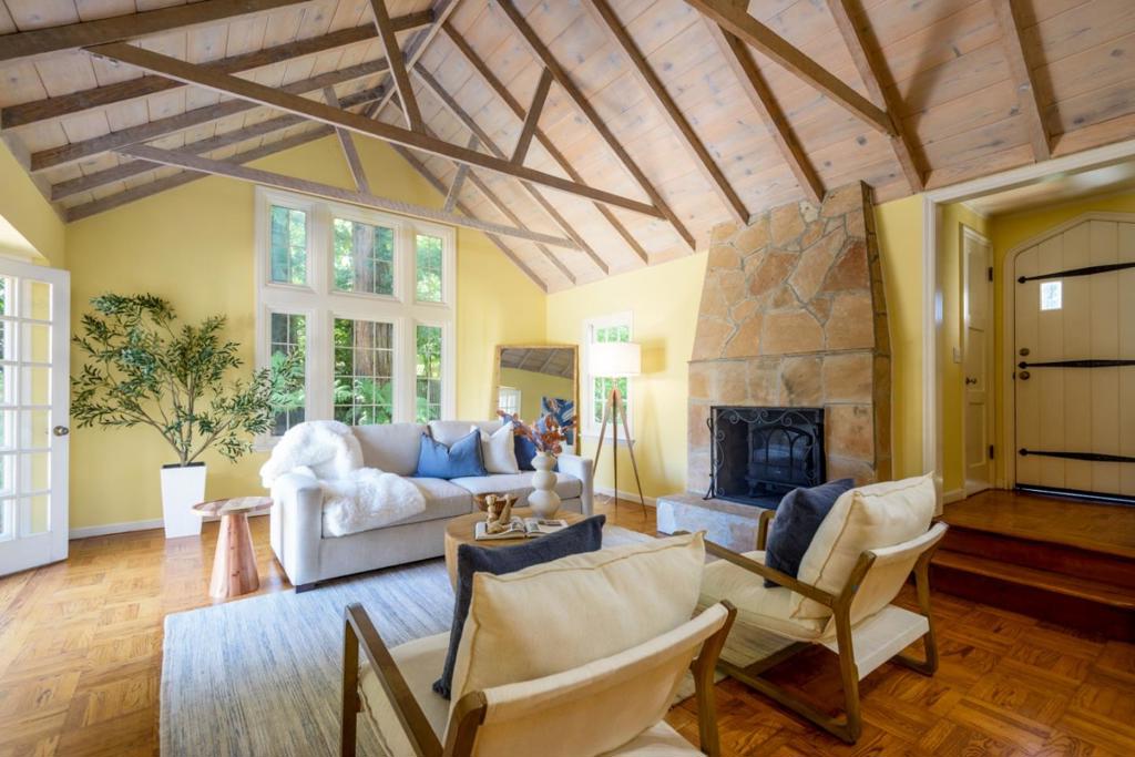 Nestled behind lush hedges, this inviting Carmel-style home offers both exceptional privacy and the potential for strong rental income. Whether savoring a morning coffee or an evening glass of Caymus cabernet, the spacious back patio provides multiple seating areas to unwind and enjoy life. Open the French doors from the living and dining rooms for seamless indoor/outdoor living, or retreat to the cozy family room for a quiet escape. The main house features 3 spacious bedrooms and 2 bathrooms, creating generous private living space. Across the breezeway, a detached 1-bedroom, 1-bath guest cottage (buyer to verify permit status) is a rare find. With its own kitchen and separate laundry, it offers complete independence and privacy. Just a few blocks away, San Mateo Drive and the bike bridge provide quick access to Stanford. Beyond that, Santa Cruz Avenue, El Camino Real, and the Stanford Shopping Center put nearly every amenity within easy reach.