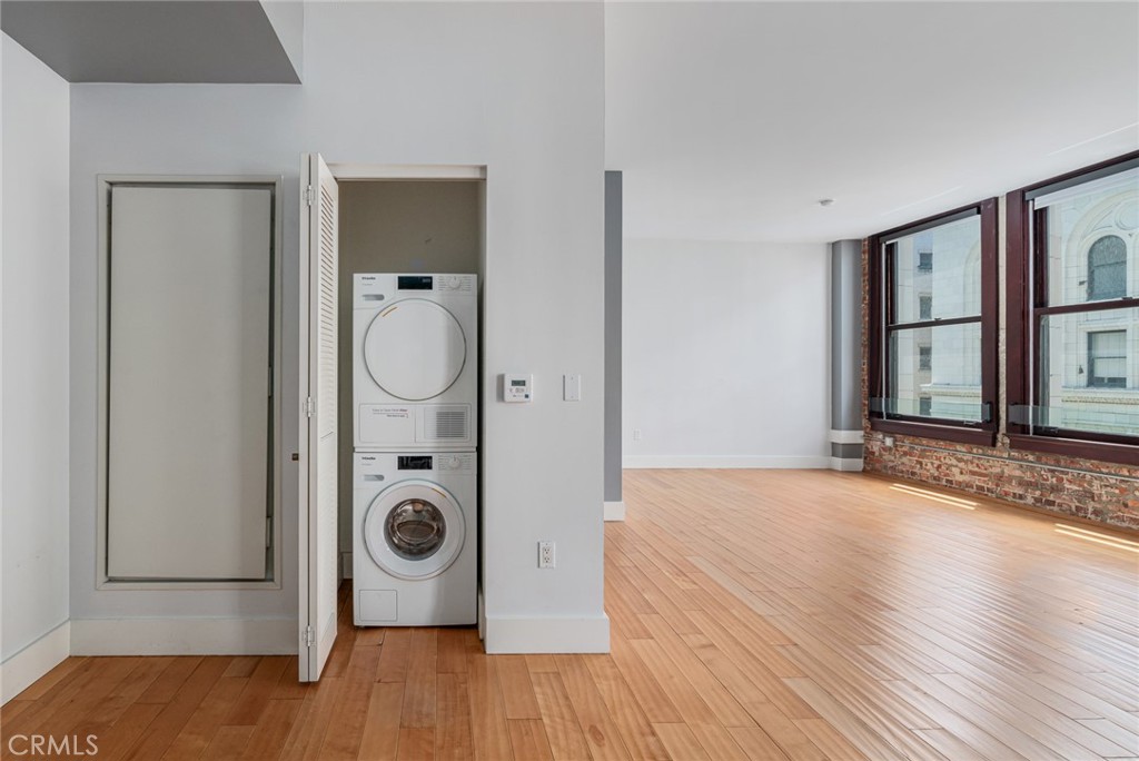 Live the best of DTLA life in this sleek 2-bathroom loft on Spring Street in the iconic Rowan building. This cool loft is one of the few units in the building to have an oversized 2-bedroom floorplan, on tax records, (which is currently set up as one big open loft space with one separated bedroom). The layout is such that the bedroom has been sectioned off as a separate room. It also features 10-foot ceilings, exposed brick walls, top of the line appliances and overlooks 5th Street. The large windows let in luscious amounts of light. The sleek kitchen is open to the living room. There’s a roomy bathroom with shower/tub combo en-suite with the private laundry area. Located in the Old Bank District in the booming Historic Core of Downtown LA, the Rowan was originally built in 1912 and exquisitely remodeled in 2008. Today’s residents enjoy a beautiful mix of historic building features and high-end modern conveniences. Historic features include exposed brick walls, original large windows with beautiful mahogany frames, historic marble flooring in the lobby and restored exterior façade. The Rowan is a full amenity building, including a 24-hour doorman, resident’s lounge, hot and cold plunge pools, outdoor BBQ area, dog run, on-site dry-cleaning valet and bike storage. All common areas are even WIFI-enabled. Parking is available to rent in the adjacent Old Bank District Garage, which is located directly behind the Rowan, and accessed via a partially gated alley.