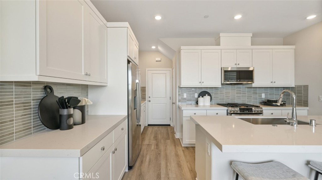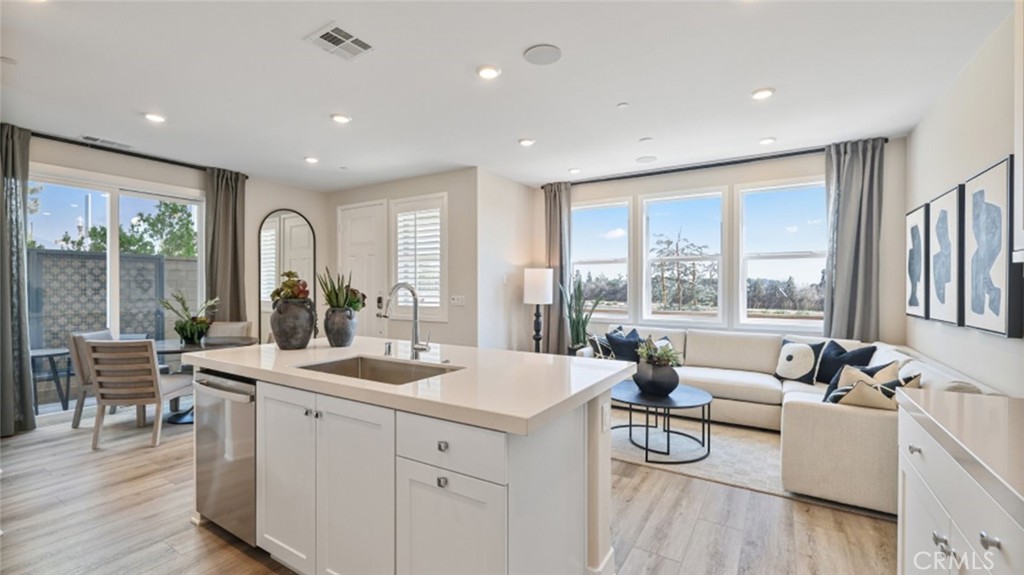 On the first floor of this new three-story home, an inviting open floorplan combines the kitchen with the living and dining areas. The owner’s suite and two secondary bedrooms are located on the second floor. An additional bedroom and versatile loft with access to a covered deck can be found on the third level.
