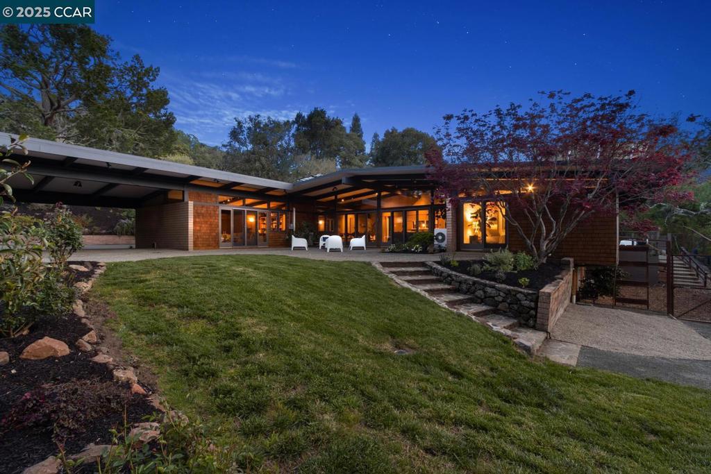 This exquisite mid-century residence was designed by the notable modernist Paul Hammarberg, one of the Bay Area’s most successful Mid-century Modern architects and is surrounded by an amazing gated 1.22 acre landscaped estate property with patios and flat lawn areas for play and entertaining. Remodeled to perfection by the current owners. The original elements of the design, open floor plan, paneled walls, and exposed beams remain and are complemented by a careful extensive remodel. This home lives the indoor/outdoor life style with walls of dual pane windows and skylights that stream natural light and frame garden views throughout the home. The focus is on energy efficiency with an extensive owned solar system, radiant heat and mini splits for additional heat and cooling with a backup Kohler home generator. The kitchen was recently remodeled and expanded for the serious chef and includes an Induction Cook top and Steam Convection Oven. The fabulous yard has two potential pool sites surrounded by lush lawns and landscaping. There is a green house for the outdoor enthusiast. Private yet close to downtown!