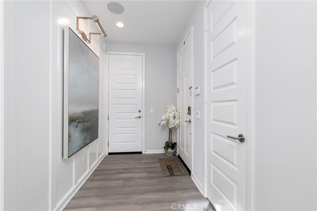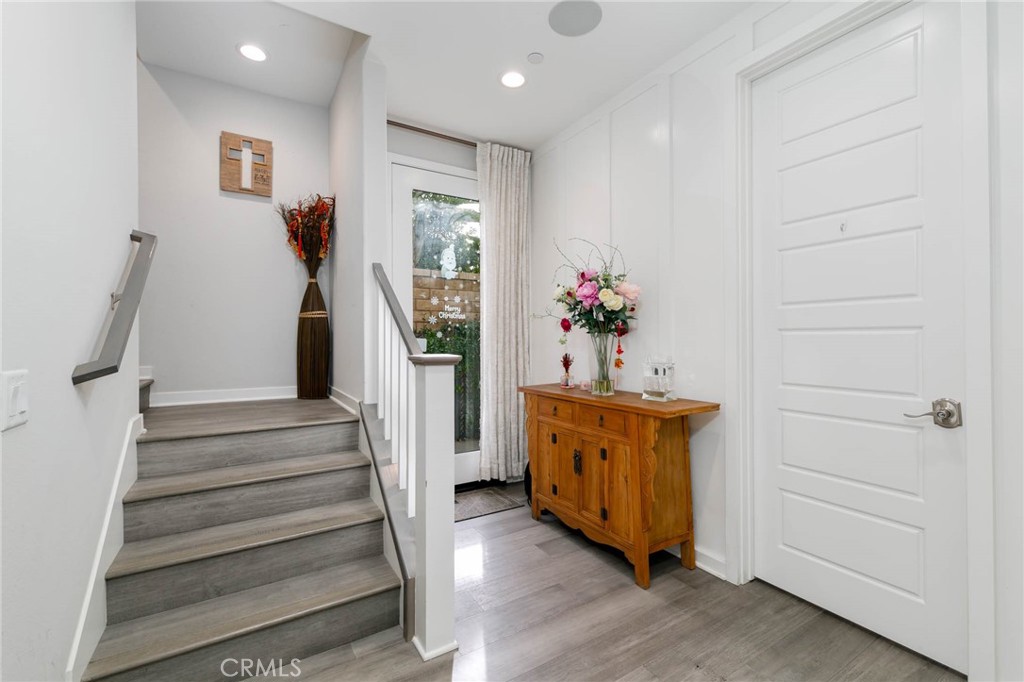 Welcome to 5 Hideaway Loop, corner-unit home offers the privacy and security. Originally designed as a Shea model home, it showcases a unique blue exterior, approximately $100,000 in premium builder upgrades, blending modern luxury with thoughtful design throughout. From whole-home surround sound and custom shutters to upgraded cabinetry, designer lighting, and elegant finishes, every detail has been carefully curated. The home is fully equipped with a smart home system, including an advanced thermostat, automated locks, lighting control, and a security alarm-delivering comfort, convenience, and peace of mind. Low tax rate, high school rating without Mello-Roos. The first level denatures a spacious two car garage, a private bedroom with a full bath, and generous storage-ideal for guests. The second level is the heart of the home, designed for both everyday living and sophisticated entertaining. A bright open-concept layout is enhanced by high ceilings, recessed lighting, and abundant natural light. The chef’s kitchen impresses with a large quartz island, white soft-close cabinetry, and stainless-steel appliances, flowing seamlessly into a private balcony for effortless indoor-outdoor living. The upper level hosts a luxurious primary suite, complete with a walk-in closet, dual vanities, and a spa-inspired walk-in shower. Two additional bedrooms, a full bath, and a dedicated laundry room complete this level with style and functionality. Crowning the home is a spectacular rooftop balcony, perfect for entertaining relaxing, BBQs, and enjoying beautiful views. Built-in lighting enhances the space for evening gatherings, creating a true outdoor retreat. Additional highlights include epoxy-coated garage floors, and EV charger, and tankless water heater. Residents enjoy resort-style HOA amenities, including a large pool and spa, fire pit, playgrounds, and BBQ dining areas. Ideally located within walking distance to restaurants, a yoga studio, fitness center, and nail salon, with easy access to toll roads for a seamless commute. This is luxury living at its finest-sophisticated, private, high-rating school and perfectly located.