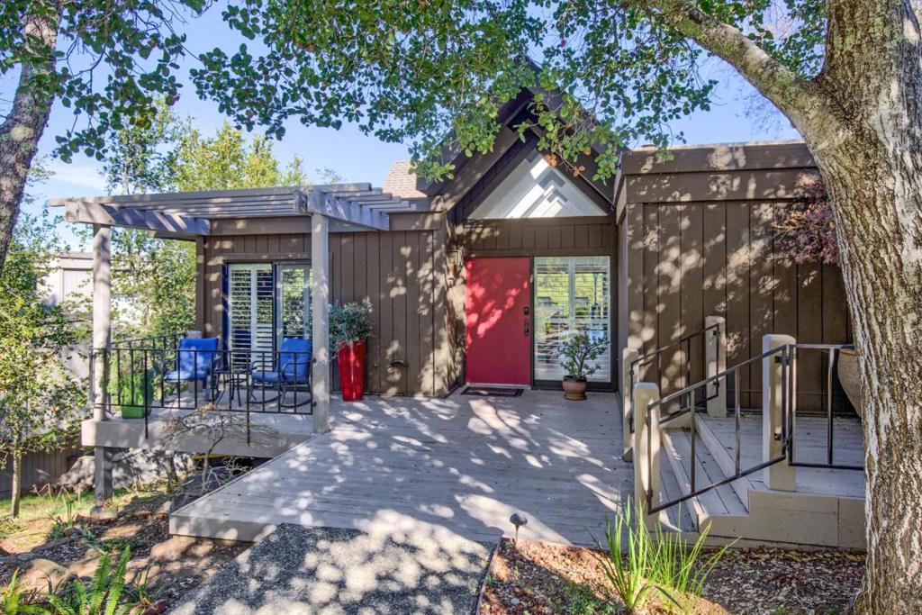 This Portola Valley Ranch home showcases stunning views of Coal Mine Ridge in a tranquil setting. Beautifully remodeled, the two-story home exudes sophistication with lightly hued hardwood floors spanning the main level. The living/dining room features a soaring cathedral ceiling, fireplace, and expansive use of glass with picturesque views. The well-appointed kitchen has island counter seating, a breakfast nook, and high-end stainless steel appliances including a gas range. Main-level primary suite with luxuriously remodeled en suite bath with curbless bathing area with freestanding tub. Lower level has a family room, 2 additional bedrooms, full bath, and laundry room with washer/dryer. Expansive covered and open decks extend the living space outdoors. 2-car detached garage with 2 Tesla charging outlets. Enjoy exceptional amenities of The Ranch, including pools, tennis courts, fitness center, orchard/vineyard/community garden, hiking/biking trails, and playground, all midway between San Francisco and Silicon Valley.