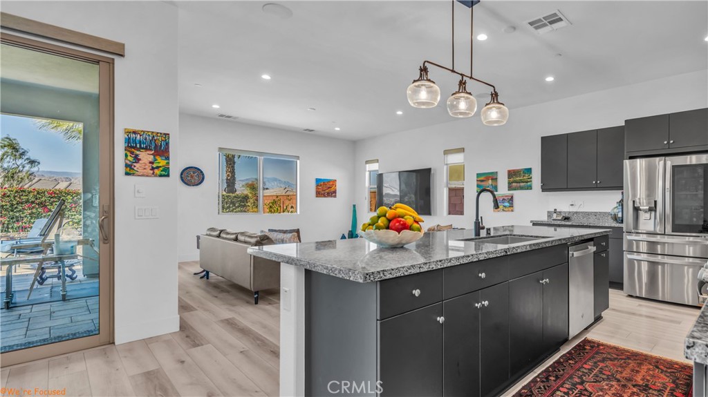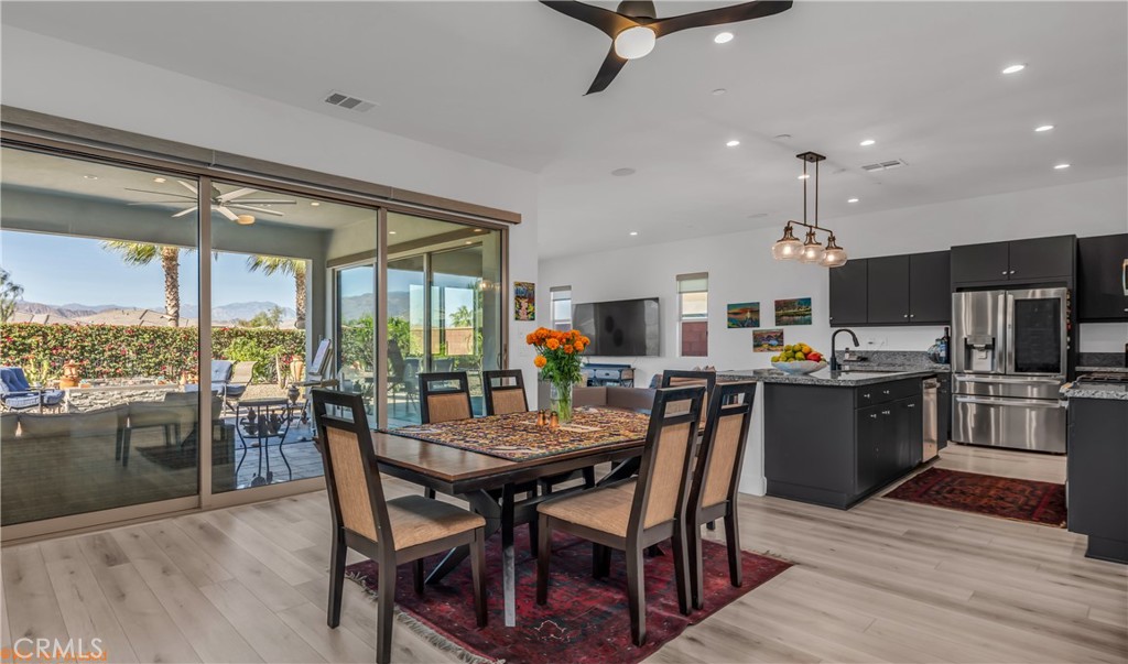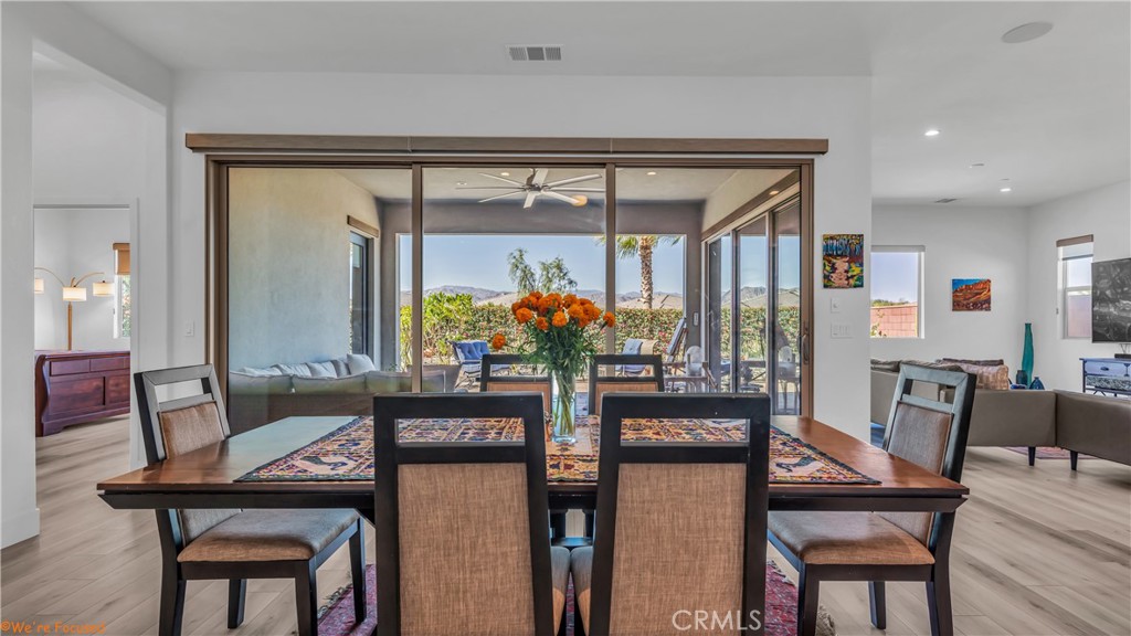 Available April 2025 furnished with spectacular mountain views and an exceptional outdoor space? Welcome to Trilogy Polo Club, where this beautifully upgraded home, situated on an oversized 11,600 sq. ft. corner lot, offers stunning west-facing views and an expansive backyard perfect for relaxing or entertaining. Located in the exclusive 55+ section of the community, this highly desirable Excite floor plan features 2 bedrooms, 3 bathrooms, and a versatile den that can serve as a home office, guest room, or third bedroom. The open-concept great room design is bright and inviting, showcasing luxury vinyl plank flooring, recessed LED lighting, ceiling fans, and upgraded cabinetry with soft-close doors and drawers. Premium energy-efficient features, including solar panels and IID service, help keep utility costs low, while a water softener and filtration system provide added convenience. Two large rolling glass walls in the great room and dining area open to an oversized covered patio, creating a seamless indoor-outdoor flow ideal for entertaining or relaxing. The gourmet kitchen is designed to impress with GE stainless steel appliances, an LG ThinQ French door refrigerator, granite countertops, an oversized island with seating, and ample storage. The spacious primary suite offers a walk-in closet with a custom California Closets organization system, while the upgraded laundry room, complete with an LG washer and dryer and custom cabinetry, adds extra functionality and style. Step outside to your private outdoor retreat, where you’ll find low-maintenance desert landscaping, an extended paver patio, and breathtaking, unobstructed mountain views. The built-in BBQ island, equipped with a rotisserie, range oven, and prep space, makes outdoor living and dining a true delight. With its oversized corner lot, luxurious upgrades, and resort-style amenities, this home offers the perfect setting for relaxing desert living. Schedule your private tour today and experience the unparalleled lifestyle at Trilogy Polo Club!