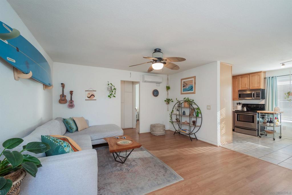 Surfers Dream!! Only seconds from the waves, beach and water!! This block of Long Branch ends at the beach. Recently remodeled charming and cozy Extra-large 624 sq. ft. Light and bright – wood flooring and tile in kitchen and large bathroom with tub. Modern furniture. Blinds throughout. So much extra room in the bedroom for desk or sitting area don’t miss the huge walk-in closet. Storage cabinets in the hallway area. Furnished is preferred but unfurnished is an option. Assigned parking spot. Washer and Dryer for only 4 units no charge. Nice patio area for outdoor relaxing. The Best of OB!!! Available April 1st.