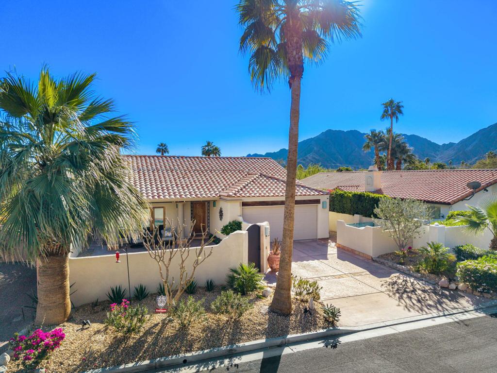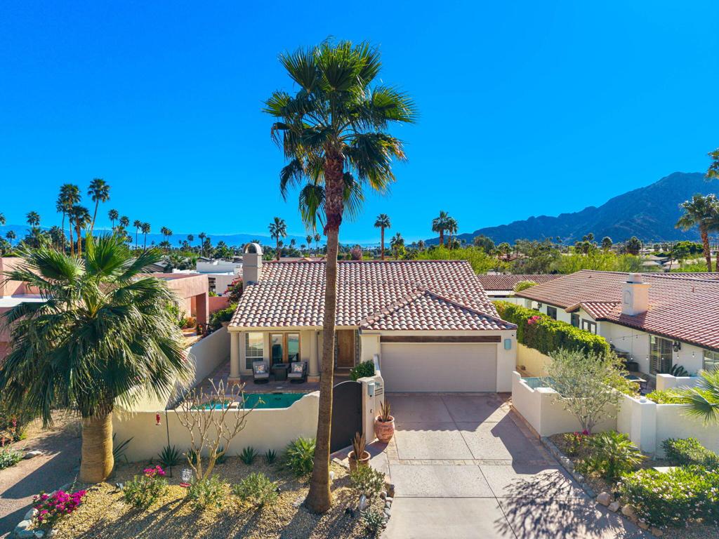 Charming Home with Pool and Spa in Yucatan CoveNestled in the highly sought-after Yucatan Cove neighborhood of La Quinta Cove, this beautifully 3-bedroom, 3-bathroom home offers a perfect blend of style, comfort, and functionality. With a serene front-loaded courtyard featuring a sparkling pool and spa, this property provides a private oasis ideal for relaxation and entertaining while enjoying the mountain views.Pride of ownership, many upgrades in the last year. Remote pool equipment controls, new front gate, security system, new pavers and drainage system side of home, improved electrical and plumbing, new lemon tree, some painting interior. The spacious living areas are highlighted by a cozy fireplace, and the living room with soaring ceiling is enhanced with stunning Spanish tile floors that create an inviting atmosphere with French doors to pool.. The remodeled kitchen boasts honed slab granite countertops and modern finishes, perfect for culinary enthusiasts.The primary bedroom retreat is a true sanctuary, featuring a see-thru fireplace that adds ambiance to both the bedroom and the luxurious sunken tub in the en-suite bathroom. A walk-in closet with ample storage completes this perfect private escape.The home also offers a den/office combination with a built-in art niche and additional storage, ideal for working from home or creative pursuits. You’ll find beautiful Saltillo tile floors, adding warmth and charm.Additional highlights include a two-car garage, natural gas service (not propane, as is common in much of La Quinta Cove), and a prime location just a short walk to Old Town La Quinta and nearby hiking trails. NO HOA DUES