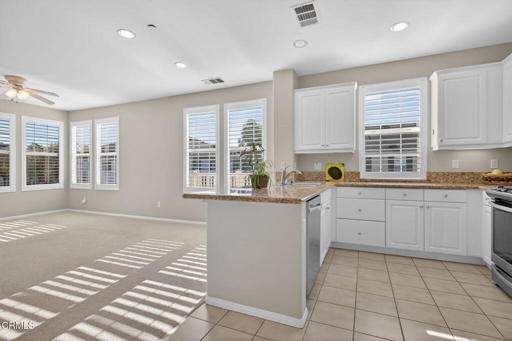 Here’s the spacious upstairs 2+2 Harmony condo you’ve been dreaming of! Sunny and spacious with plantation shutters and a darling deck to enjoy Ventura’s gorgeous weather. Enter the tiled entry to the cook’s kitchen with generous workspace and cabinets, stainless appliances; including a refrigerator and a pantry! The primary suite resides off of the living area and opens to the deck and features a generous walk-in closet and en suite bath. The secondary bedroom is off the entry and has a nearby full bath and the adjacent hallway has an included stackable washer/dryer! Perfect wing for guests or roommates! There is central heating and all rooms have ceiling fans. Beautiful newer carpeting, new mirrors, LED lighting. Loads of storage inside and off the deck and you’re sure to enjoy the attached single car garage with opener. This beautifully maintained community has a reasonable HOA which includes trash, fire and earthquake insurance, exterior building maintenance, painting, pest control and roof. Ideally located just a couple of blocks from the Ventura Co Government Center, Thille Park, 101 & 126 Freeway access, and just minutes to Ventura’s glorious surfing, marina and beaches, and a few miles to Ventura’s historic downtown cultural district and funk zone. Walkable to shopping, restaurants, banking and more! Hurry and see this soon!