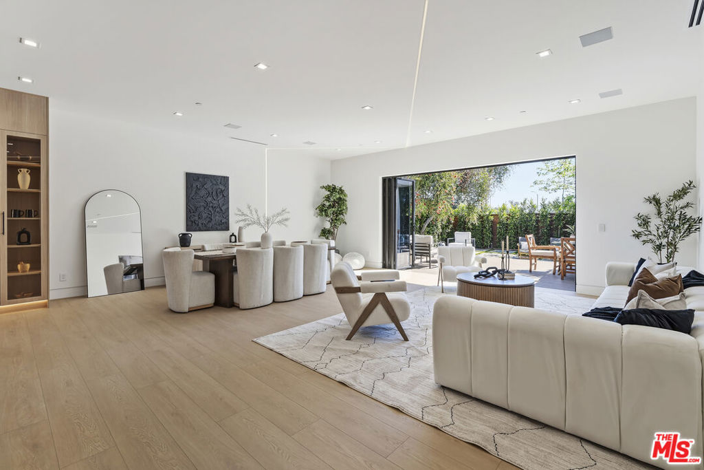 Welcome to this exquisite modern estate in the heart of Encino. This magnificent single-story residence offers 4 bedrooms and 4 bathrooms, thoughtfully designed with elegance, comfort, and seamless indoor-outdoor living in mind. As you step inside, you are greeted by an open-concept floor plan that flows effortlessly from the entryway to the backyard. The chef’s kitchen features custom cabinetry, premium Thermador appliances, a sleek modern island, and a spacious walk-in pantry with direct access to the garage perfect for everyday convenience. The living room is light-filled and inviting, highlighted by expansive sliding pocket doors that beautifully blur the line between indoor and outdoor living. Just off the entry, you’ll find a well-appointed in-law suite complete with its own bathroom and a custom-designed closet ideal for guests, extended family, or a private home office. The primary suite is a true retreat, featuring a luxurious spa-inspired bathroom, a thoughtfully designed walk-in closet, and sliding pocket doors that open to a serene outdoor deck, creating a peaceful and airy ambiance. Two additional bedrooms are conveniently located on the same wing, along with a dedicated laundry area and a stylish powder room. Beautifully landscaped front yard offers great curb appeal with clean modern lines, mature greenery, and a welcoming entry. The private backyard is designed for both relaxation and entertaining, featuring low-maintenance landscaping, ample space for outdoor dining and BBQ, and a serene setting ideal for gatherings or quiet evenings under the stars. Prime Encino location, centrally situated near parks, convenient freeway access, and an array of top dining and shopping options.
