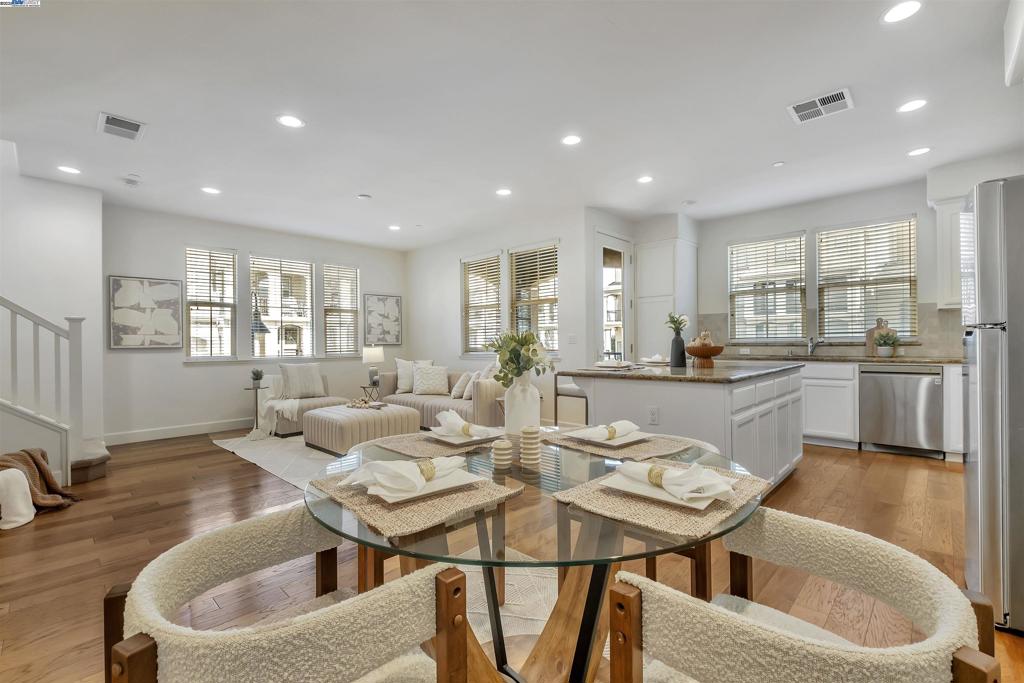 Location! Location! Location! Welcome to this stunning NE facing corner lot townhouse which is situated in this Prima Community in Newark. This property offers an exceptional living experience with its spacious and well-designed layout and tons of natural lights. It features 2 bedrooms, 2.5 baths and a 2-car side-by-side garage that provides ample storage space and easy access to your vehicles. Tastefully upgrades throughout. High ceiling and open concept features! The chef-grade kitchen includes white cabinets, full tile backsplash, natural stone countertop, stainless steel appliances, supersize island. Formal dining area and private patio is perfect for entertaining. Central AC and heating. The primary suite boasts a spacious walk-in closet and double sink vanities, providing a luxurious and relaxing experience. Walking distance to BJ’s restaurant, Starbucks, AMC, Costco and New Park Mall. It’s also within walking distance to company commute bus stops and close to the desirable Challenger School & park with easy access to Freeway 880 & BART as well as to all major tech companies makes this home even more appealing. No rental restriction! Won’t last long!!!