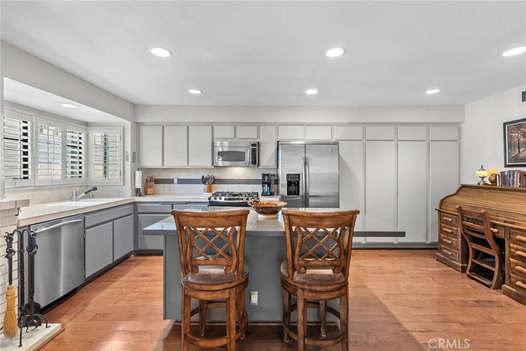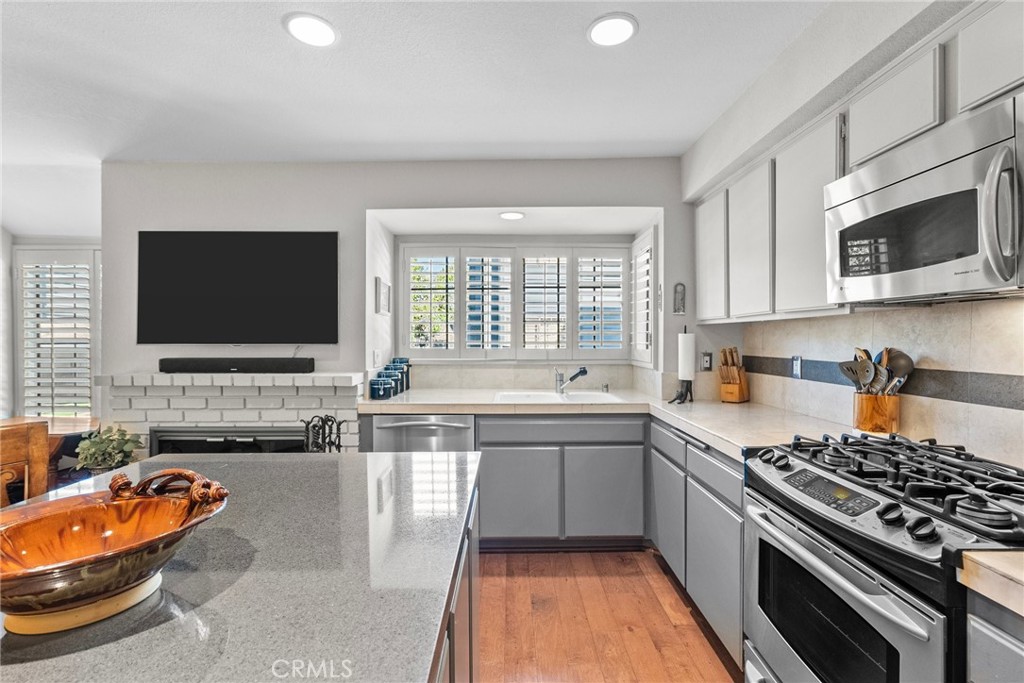 Welcome to this meticulously maintained home in the desirable WOODLAND GROVE community. Offering a perfect blend of classic luxury and comfort in this 2 bedroom, 3 bathrooms 1590 sq ft of living space. This lovely property features THREE COZY FIREPLACES, a TANKLESS WATER HEATER, and a newer HVAC system for year-round comfort and energy efficiency. The open-concept design includes an entertainer’s living room, formal dining area, and a chef’s kitchen with GE Profile stainless steel appliances, quartz countertops, and ample storage. A charming private courtyard patio, beautiful engineered hardwood floors, plantation shutters, neutral custom paint throughout and wrought iron stair rails add to this stunning home’s appeal. The grand primary suite boasts vaulted ceilings, dual walk-in closets, and an en-suite bath with travertine finishes. Enjoy the convenience of a spacious bonus room and access to beautifully maintained greenways, plus a central pool and spa area. Located near world-class shopping, dining, Warner Center, SUMMER CONCERTS, convenient freeway access, and the UPCOMING GLOBAL SPORTS AND ENTERTAINMENT DISTRICT – including the NEW RAMS TRAINING FACILITY. This home offers a perfect balance of tranquil living and modern convenience. Don’t miss out on this incredible opportunity to own in one of the area’s most sought-after communities in Woodland Hills