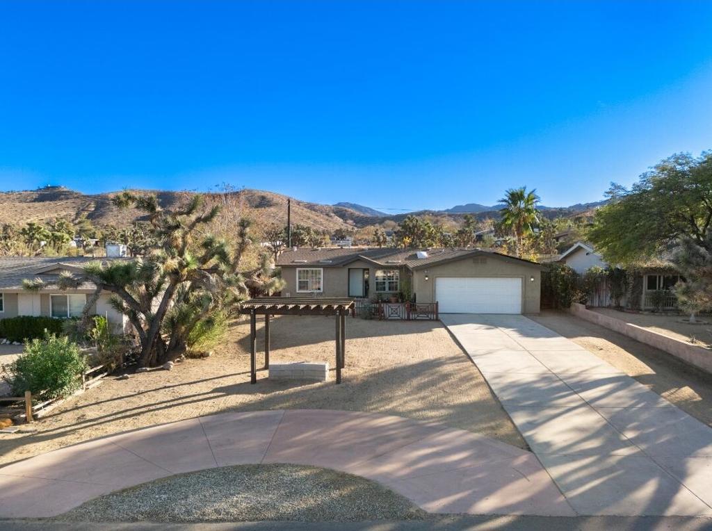 Welcome to this light and bright adorable manufactured home in the heart of Central Yucca Valley . Nestled on a quiet street in a great neighborhood near several schools, this home offers both tranquility and convenience. It’s just a short drive to local stores, restaurants, and the breathtaking trails of Joshua Tree National Park.Inside, you’ll find a spacious and thoughtfully designed layout. The open-concept kitchen and living area make hosting friends and family a breeze, offering a warm and inviting space for connection. The split floor plan ensures privacy, with the master suite separated from the other two bedrooms and bathroom.The backyard is the true gem of this property, where relaxation takes center stage. Unique, professionally crafted patio covers create a peaceful ambiance, perfect for unwinding. The backyard also features a cemented area for convenience and a cozy firepit nook–ideal for enjoying hi-desert evenings under the stars. The view is spectacular, framed by iconic Joshua trees, adding a true desert charm to the setting.Whether you’re searching for your first home or considering an AirBnB/vacation rental, this property offers endless charm and opportunity. Don’t wait–schedule a tour today and see all that this home has to offer!