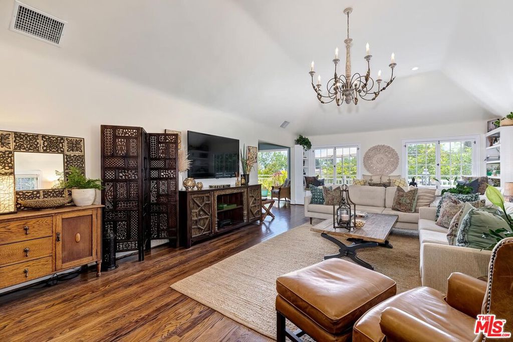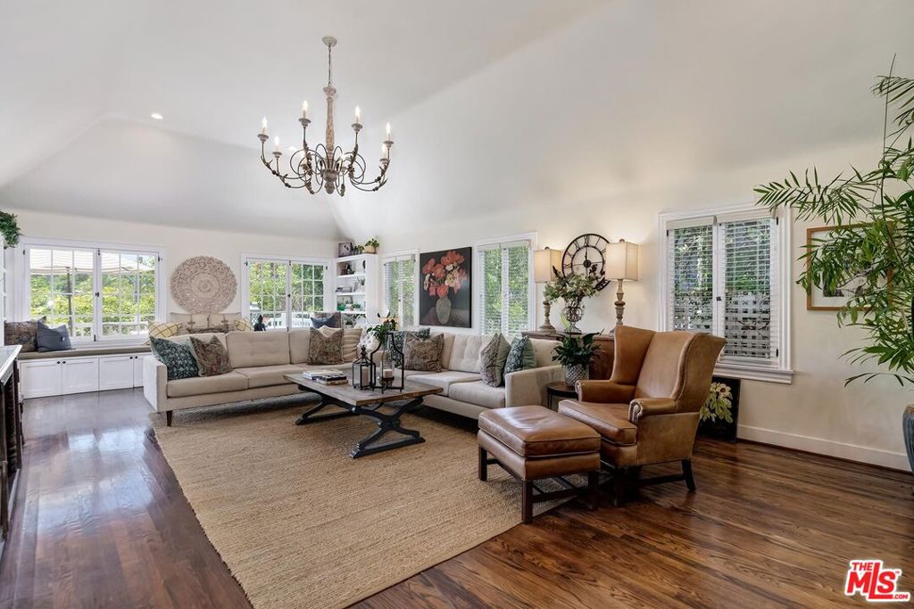 Like living in a piece of Hollywood history, this romantic French Country estate is halfway up Beachwood Canyon, just under the Hollywood sign. This home’s serene setting is the absolute perfect escape from the city’s hustle and bustle, offering a tranquil retreat of lush greenery, quiet surroundings, and magical sunrises and sunsets that fill the canyon every day. Features include: an expansive living room with vaulted ceilings; French doors that open to gorgeous views; a warm, cozy fireplace; a remodeled kitchen with top-of-the-line appliances; a master bedroom with a private deck; and a lower-level “casita” with its own private entrance and bathroom. In addition to that, there are 3 hidden gems: (1) a large 585 sqft. standing-room attic space above the garage (perfect for extra storage); (2) a 105 sqft. storage room just off the stairwell (for even more storage); and (3) a walk-in closet that could be — and was — used as a recording studio. The location is ideally tucked between two vibrant villages: Beachwood Village and Franklin Village, both offering a wide variety of shopping and culinary treats. Available furnished for $11,500/mo.