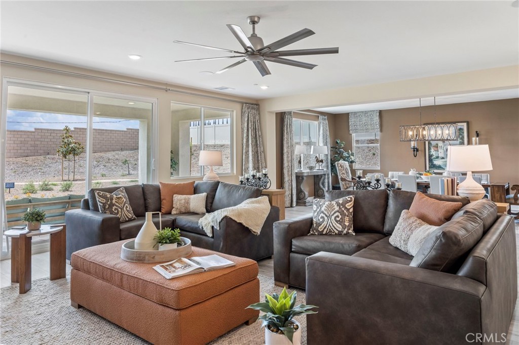 NEW CONSTRUCTION! “There is Simply Nothing Like It” Countryside Estates friendly environment with scenic views and Open spaces. Nestled on a sprawling 25,000 sq. ft. homesite. Perfectly situated in the vibrant community of Jurupa Hills. With the Spacious layout this single story floorplan possesses an expansive, seamless open concept, with amazing possibilities of in-door out-door living/entertainment. This remarkable property boasts an enormous backyard, perfect for hosting memorable gatherings, or simply relishing tranquil moments with family and friends. The gourmet kitchen, equipped with LG appliances (Dishwasher, Gas Cooktop, Refrigerator, Oven and Microwave), spacious designer quartz countertops, and significant storage, serves as a perfect haven for culinary enthusiasts and social gatherings. Experience builder upgrades such Vallejo grey countertop, tile kitchen backsplash, and brushed nickel pot filler. The opulent primary suite boasts a sliding door that opens to the backyard so you can begin your day with a peaceful cup of coffee, immersed in the enchanting allure of serene mornings. The suite is complemented by a luxurious en-suite bathroom, thoughtfully designed with dual walk-in closets, two sinks, seamlessly blending practicality with sophistication. Energy Efficiency: Designed with eco-friendly materials and enhanced by state-of-the-art energy-saving features your new homes comes with Solar and Battery Backup included. Experience the ultimate fusion of elegance, comfort. This home is under construction with expected delivery in July. Photos are of model home in this floor plan and depict options and upgrades that may or may not be available to be included during the construction process.