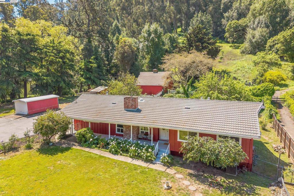 Looking for California Country Charming to raise your family or small rancher with this spacious 6.76 acre ranch featuring nice updates in beautiful Castro Valley. The main single story ranch home, 3 Bedroom, 2 Bath 1470 sq ft of living two car garage and a carport. Plenty of room to roam. Enjoy the fresh ambiance created by new interior and exterior paint, along with new flooring throughout. The kitchen is equipped with great countertops, nice cabinets, and a generously sized pantry, newer appliances, making it ideal for any family and friends. An additional mud room enhances the functionality of the space is great. The main bedroom offers a serene retreat area for relaxing and having a cup of coffee in your bedroom or on the deck. The ranch features a 6-stall barn with a tack area, hay loft, outside pasture, hillside trails, and a small arena for equestrian enthusiasts. Even a couple great areas for your garden and a fishpond which needs a little tlc repair in your front yard near the meandering creek. A cute chicken coop adds to the property’s charm. The property prioritizes safety and security with a newly updated security gate and an nice bridge crossing. Overall, the premises are maintained in good condition. This ranch style single story home with land is a must-see !