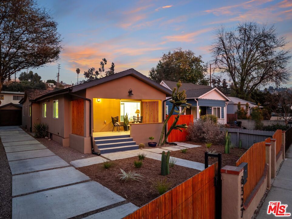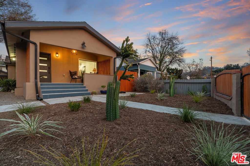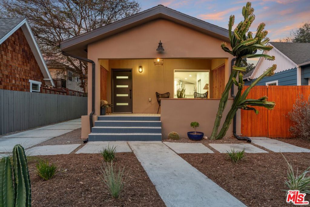 This beautifully updated 3bd, 3 ba Highland Park bungalow offers gorgeous modern upgrades, while also boasting its timeless character. A large front porch beckons, perfect for enjoying a morning coffee or unwinding at the end of the day, overlooking a drought-tolerant-landscaped gated front yard. Upon entry, find an open-concept living and dining area, with soaring high ceilings and expansive windows, natural light flowing freely throughout the space, creating an inviting atmosphere of comfort and familiarity. The kitchen, designed with entertaining and convenience in mind, provides everything needed for everyday gatherings, lively dinner parties, and casual get-togethers. Every part of this bungalow has been thoughtfully renovated, including wood flooring throughout, custom tiles, and recessed lighting. Continue, down the hall, there’s a half bath, and the laundry closet, intentionally located for ease of access. On the left, a bright, airy bedroom, followed by the gorgeous tiled full bath. Overlooking the backyard, the primary suite. Across the hall, the third spacious bedroom.Outside, a long driveway leads to a detached one-car garage, alongside a versatile bonus room – perfect for an office, gym, or creative studio. At the rear of the property is the enclosed backyard, featuring a covered patio, great for dining al fresco, and cozy nights under the twinkling lights. And what makes this property extra-special? The main systems of the house are as solid as the renovations! This home, mere moments from NELA’s best spots on Figueroa Street, including renowned shops and eateries like Kitchen Mouse, Triple Beam Pizza, Hippo, Jeff’s Table, and Sunbeam Vintage. 6327 Arroyo Glen Street, truly a wonderful blend of convenience, style, and personality.