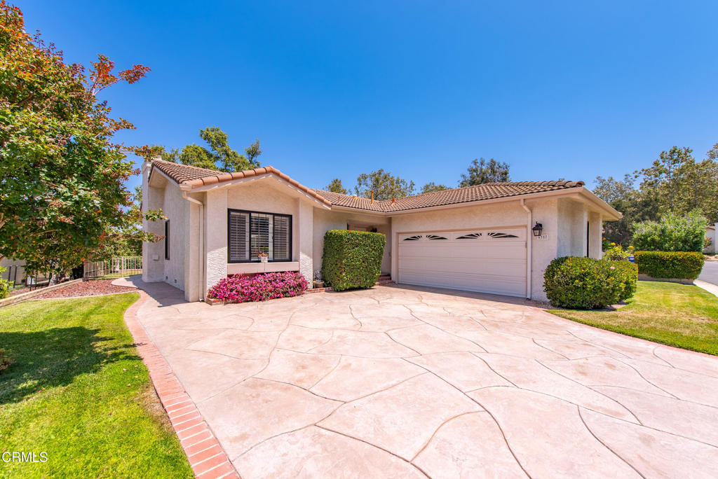 Views, views, views! Welcome to this beautifully updated single-story home, where stunning golf course and mountain vistas provide a serene and scenic backdrop to everyday living. Bathed in natural light, this charming residence is nestled within the highly desirable 55+ gated community of Camarillo Springs. It offers 2 spacious bedrooms, 2 bathrooms, 1,561 sq ft of inviting interior space, and sits on a generous 5,227 sq ft lot. The cheerful eat-in kitchen is both stylish and functional, featuring eye-catching blue cabinetry, Corian countertops, a mobile island, Pergo flooring, and a pass-through to the living room that creates a seamless, open feel. The expansive living room boasts vaulted ceilings, newer plush carpeting, and a white brick fireplace with a classic mantel, an ideal space to relax or entertain. Sunlight pours in through the large windows and sliding glass doors, leading you to a private backyard patio with a retractable awning, which is perfect for enjoying your morning coffee or alfresco dining beside the picturesque 9th hole. The primary suite serves as a tranquil retreat with vaulted ceilings, a large walk-in closet, direct patio access, and an en-suite bath with a walk-in shower and single-sink vanity. The secondary bedroom also offers direct access to the hallway bathroom, making it a perfect guest room or optional second suite. One of the home’s unique features is a second laundry area in the garage, allowing the indoor laundry room to be reimagined as a craft room, gym, office, or whatever inspires you. Additional highlights include newer dual-pane windows, plantation shutters, smooth ceilings, A/C, and direct access to a 2-car garage with driveway. Ideally located across from the clubhouse and steps from scenic nature trails, this home offers the best of active, low-maintenance living. Enjoy resort-style amenities including a pool, spa, fitness center, library, and low HOA dues. Come experience the lifestyle you’ve been dreaming of, schedule your tour today, and fall in love!
