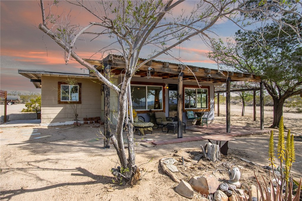 BEST LOCATION/PRICE presently in Joshua Tree: Near End-of-Road atop a hill, overlooking Copper Mountain Mesa and National Park ridgelines to the south. Views of SoCal’s two highest mountains – San Jacinto & snowcapped San Gorgonio. Arguably one of the finest locations in Joshua Tree for those seeking remote solitude for well under $300k. Nearly 5-ACRES of supreme beauty, spread over 2-parcels, providing future investment possibilities. Two parcels allow for 2 Primary Homes (SFRs) and 2 Guesthouses (ADUs) – as a result, Buyer could build three additional structures a total of 4 permitted structures to live in (buyer to investigate w County). Current home includes new dual-pane windows, new water heater, new refrigerator, new ceiling fans and a new insulation/dry-wall in ceiling of main room for heating/cooling efficiency. Mature landscaping and shade trees. Ductless mini-split AC/Heating. Container included for extra storage space. For those looking for their desert dream getaway, look no further. Note, Green lines demarcating parcel borders are approximate and not the result of a survey. Directions – DO NOT USE GPS or Google maps – instead, follow these directions: Go north on Border Ave, right (east) on Winters Rd, the left (north) on Mt Nebo Rd. Home located at top of hill on the right. Or find via APN: 0632-322-24