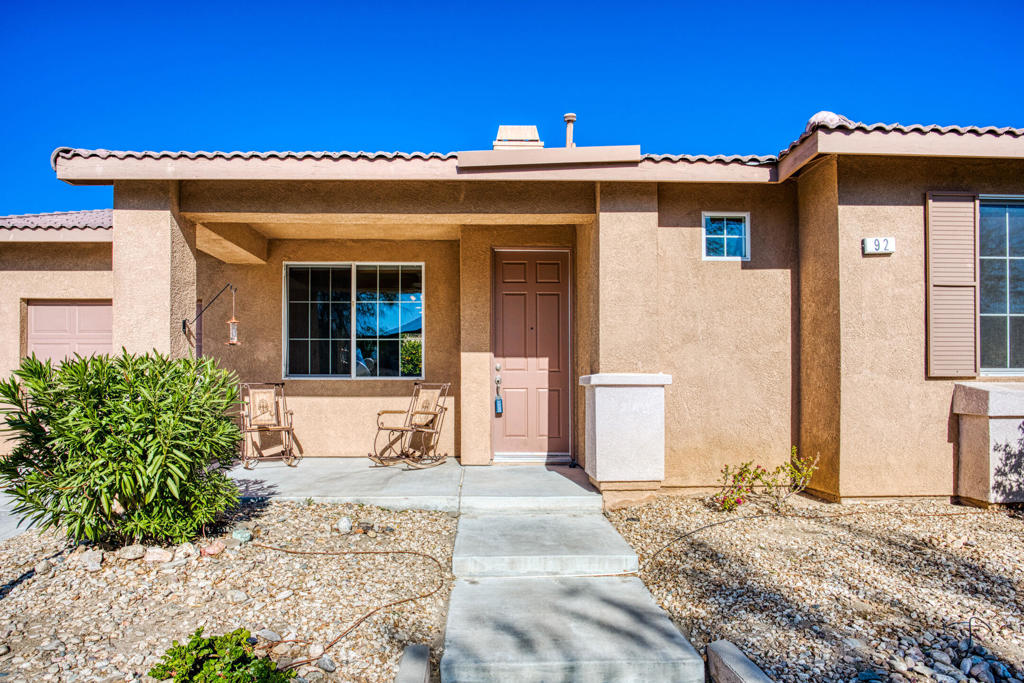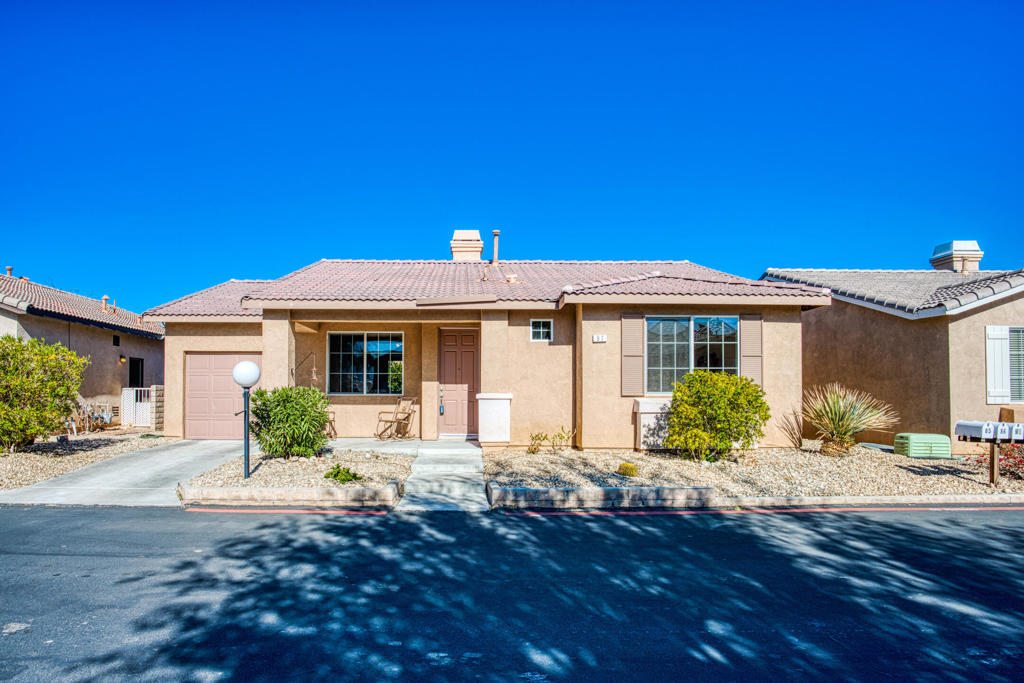Experience the best of 55+ living in this beautifully updated home in a premier gated community in the Coachella Valley. This bright and inviting 2-bedroom, 2-bathroom residence offers thoughtful design and modern upgrades throughout.The spacious great room features vaulted ceilings, a cozy fireplace, and an open dining area adjacent to the well-equipped kitchen, updated with new appliances in January 2023, including a gas range, microwave, dishwasher, washer, and gas dryer. The primary bedroom includes a private ensuite bathroom and generous closet space, while the guest bedroom enjoys direct access to a full bathroom that also serves as a powder room. A private laundry room conveniently separates the bedrooms.Recent upgrades include a new water heater, water pressure reducer, outdoor faucets, and custom energy-efficient honeycomb blinds for the bedrooms and living room. The attached tandem 2-car garage adds practicality and storage.Enjoy a wealth of community amenities, including a clubhouse, pool/spa, sauna, tennis courts, fitness center, RV parking, billiards, and a recreation room for events. Ideally located near Palm Springs shopping, dining, casinos, state parks, and the I-10 Freeway, this home offers both comfort and convenience in a vibrant community.