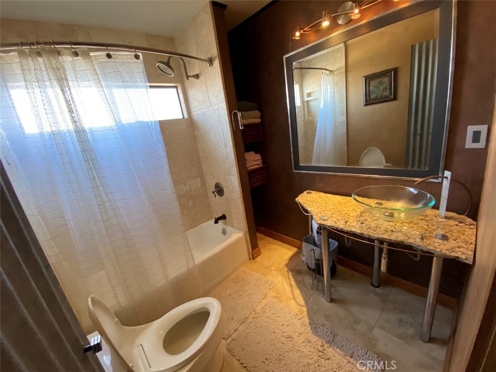 This is an exceptional one bedroom furnished home with character available for lease. Centrally located within a short drive to the Marine Corps Base, Hi Desert Medical Center, Copper Mountain College, the Joshua Tree National Park, and shopping. The property has been upgraded for quality and charm, track lighting on rheostat dimmer switches, stylish bathroom fixtures, a fully equipped modern kitchen, covered patios front and rear, low maintenance mature landscaping. Ready to move-in with dishes, linen, towels, TV, washer and dryer, all provided for your immediate use. Tenant pays for water, gas, and electricity, trash service is provided. The landscaped yard is on a timered watering system. We do run a credit report, request an application for consideration. Furnished rentals of this caliber are rare.