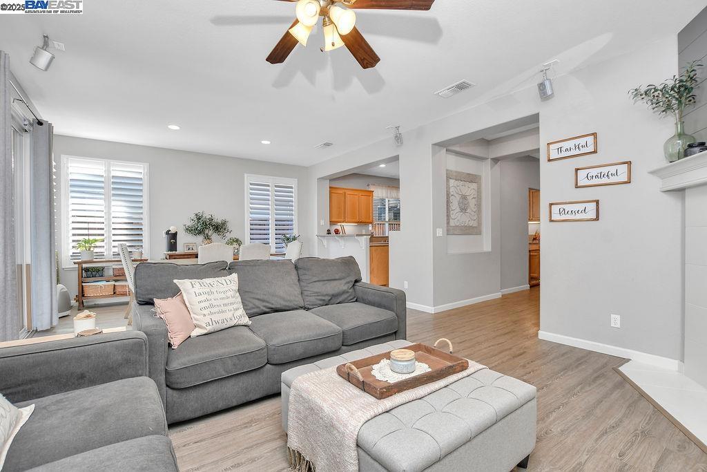 Nestled at the end of a quiet court in Discovery Bay’s prestigious gated community, The Lakes, this exceptional home combines serene lake views with direct access to scenic walking trails right across the street. A charming covered porch sets the tone, leading into a bright, open layout with stylish LVP flooring, elegant formal dining, and a spacious kitchen–family room designed for gatherings. The gourmet kitchen shines with stainless steel appliances, quartz countertops, and abundant cabinetry. The luxurious downstairs primary suite offers a private retreat, while upstairs features three additional bedrooms, a generous loft, a large bathroom, and a huge attic/storage area. Throughout, you’ll find thoughtful upgrades including recessed lighting, ceiling fans, plantation shutters, and a cozy gas fireplace with a custom accent wall. Step outside to your backyard oasis—complete with stamped concrete, lush lawn, and a durable aluminum patio cover with built-in fan—perfect for year-round enjoyment. The garage even includes an electric car charger for modern convenience. With lakeside views, gated security, and modern comfort, this home delivers the sought-after lifestyle that makes The Lakes one of Discovery Bay’s most desirable communities.
