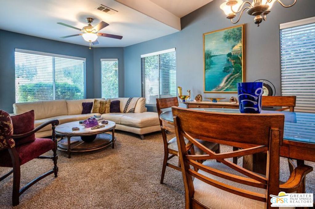 Welcome to this beautifully appointed 4-bedroom, 2-bath home offering comfort, style, and a touch of desert luxury. Step inside to find a generous living room anchored by a cozy fireplace perfect for relaxing evenings or gathering with friends and family. A formal dining room provides an ideal space for hosting dinners and special occasions.The spacious primary suite offers a peaceful retreat, while the additional bedrooms provide flexibility for guests, a home office, or creative space. Thoughtfully designed for both everyday living and entertaining, this home balances openness with warmth. Outdoors, the experience truly elevates. Enjoy a stunning private heated pool with spa that feels like your own resort getaway, set against enchanting mountain views that create a breathtaking backdrop day and night. Whether you’re soaking up the sun or unwinding under the stars, this backyard is designed to impress. Additional features include a 3-car garage and a solar system with a lease to be assumed, helping support energy efficiency. This home blends indoor comfort with outdoor beauty ready to be enjoyed. Some furniture pieces are available for sale. solar leased for $213.88 till 8/4/2032
