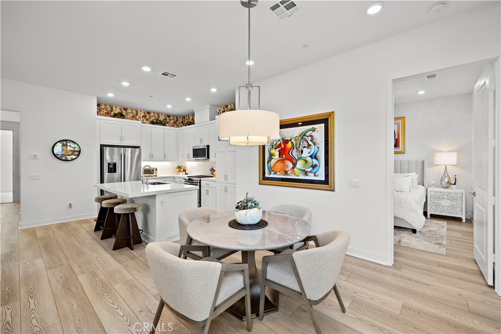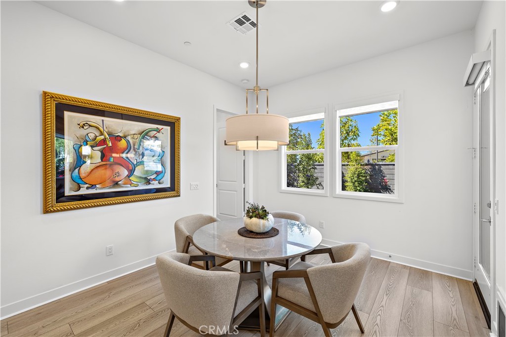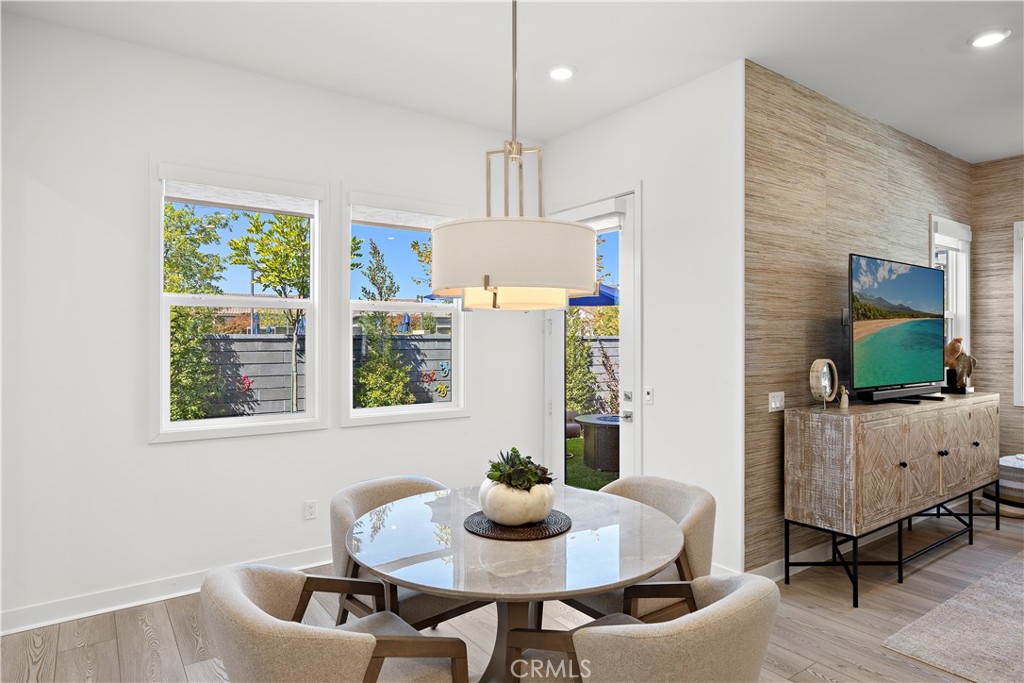 Resort-Style Single-Level Gem with Designer Finishes just steps to The Perch! Discover the pinnacle of 55+ luxury living in this beautifully upgraded single-level home, perfectly situated in the exclusive Gavilan neighborhood of Rienda. Enter to find an atmosphere of sophistication defined by soaring 10-foot ceilings, expansive windows that flood the home with natural light, and exquisite custom wallpaper accenting the living area with custom motorized shades throughout the home. The open-concept design is anchored by a chef-inspired kitchen featuring quartz countertops, high-end stainless appliances, a generous center island, a pantry, a whimsical wallpaper in the soffit and a convenient instant hot water tap. The spacious Primary Bedroom Retreat offers a true escape with high-end custom wallpaper, a luxurious en-suite bath, dual sinks, quartz counters, large walk-in shower, and custom-designed closet. The Guest Bedroom is privately situated on the opposite side of the house, next to a full bath with a tub/shower combo. The dedicated Office space, bright with natural light and provides flexibility for a den, library, or yoga studio. Enjoy serenity in your private backyard, which is beautifully landscaped and offers a rare opportunity with no one behind you, providing peaceful views of trees and hills. The 2-car garage features an extra storage area and durable epoxy floors. Includes over $30K in after purchase upgrades. FULLY PAID SOLAR, Tankless Water Heater and Luxury Vinyl Flooring.This unbeatable location is adjacent to The Perch and the path to Bolder Pond! Come experience the complete resort lifestyle at Rancho Mission Viejo as well as the Exclusive Gavilan 55+ amenities.