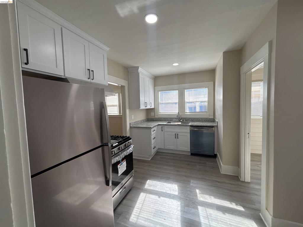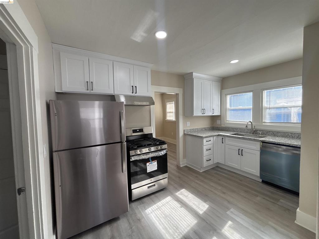 Pittsburg location close to schools, shopping, BART and freeway! Corner lot! Enclosed rear patio! 2 Bedroom house close to downtown. Double pane windows, updated bathroom and kitchen. Stove, refrigerator, separate laundry room, new flooring and paint throughout, single car garage and off-street parking, paved backyard, and close to BART.