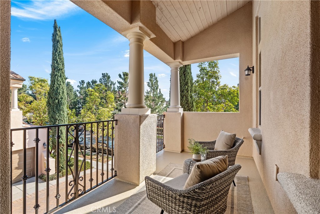 Welcome to this stunning end-unit condo in Irvine’s highly sought-after Woodbury Community! Spanning 1,545 sq. ft., this two-bedroom, two-bathroom home features an open-concept design with soaring ceilings and expansive windows that fill the space with abundant natural light. Enter to discover upscale touches, including rubberwood flooring, custom window treatments, and a sleek horizontal banister. The chef inspired kitchen is a showstopper, offering stainless steel appliances, elegant granite countertops, a spacious island with seating, and ample cabinetry. Adjacent to the kitchen, enjoy a private covered balcony—ideal for morning coffee or relaxing evenings. The primary suite offers a serene retreat with a walk-in closet and a spa-like bathroom complete with marble countertops, a dual-sink vanity, a soaking tub, and a walk-in shower. A dedicated laundry room with a washer, dryer, sink, and storage cabinetry adds to the home’s functionality. Completing the home is an attached two-car garage with direct access for added convenience. Resort-style amenities include several pools, spas, BBQ areas, sand volleyball courts, pickleball and tennis courts, and more. This home is centrally located near award-winning Woodbury Elementary School, Jeffrey Open Space Trails, OC Great Park, and the Woodbury Town Center, offering easy access to dining, shopping, and recreation. Don’t miss this rare opportunity to own a luxurious home in one of Irvine’s premier communities!