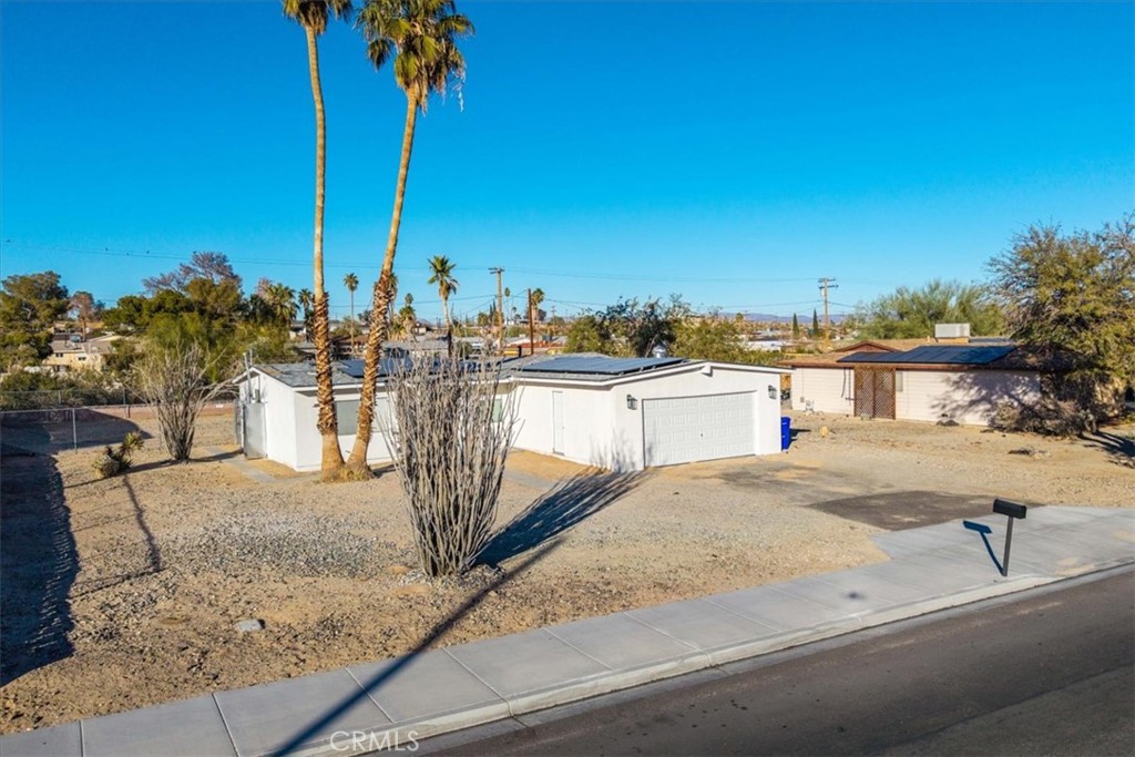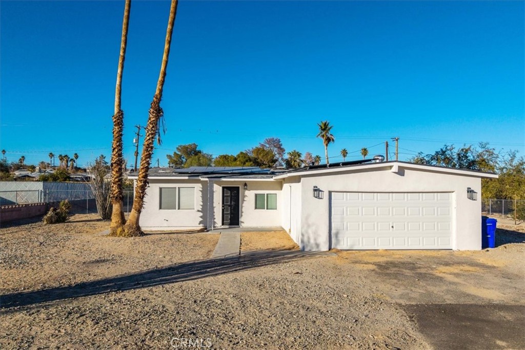 New listing, New Year. This remodeled 3 bedroom | 2 bath | 1136 sq. ft. | 2 car garage | 21,200 SF lot | Solar home features an enclosed Den/ Family room, LVP flooring, Quartz Countertops, and A/C. This is the perfect home for first-time home buyers and those upgrading to a larger home. The fenced backyard is large enough to entertain or have your fur babies run around. The solar is leased (includes lifetime maintenance service) saving you hundreds on your electricity bill. This home is conveniently located across the street from Oasis Elementary School, close to the Marine Corps Base, minutes from Joshua Tree National Park, and minutes from shopping and restaurants. Come take a look and fall in love. Start the New Year with a new home.