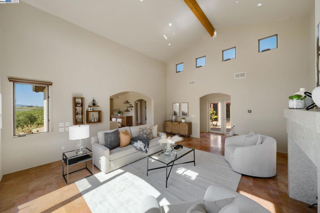Experience unparalleled serenity and luxury at 7383 Cedar Mountain, located on nearly 20 acres amidst the verdant vineyards of Crane Ridge. This Mediterranean-style estate, designed with the expert touch of Vaughan Trammell, features elegant Turkish Travertine flooring and radiant heating throughout its expansive 6,211 SF layout, which includes four bedrooms and 4.5 baths. Ample natural light highlights a sophisticated kitchen equipped with a Viking Thermador range, Fisker Paykel drawer dishwashers, a Viking double drawer undercounter fridge, dual wall-mount ovens, and a Subzero refrigerator and freezer, all set against stylish Woodmode cabinets. Entertainment flows seamlessly with seven Sonos speaker zones integrated throughout the home, enhancing gatherings with superb sound quality. The estate’s stately exteriors are complemented by eco-friendly features including 40 LG solar panels. A private pool area, surrounded by olive groves and various citrus trees, invites relaxation and provides a picturesque setting for leisure and dining. Additionally, the property includes an attached accessory dwelling unit (ADU), which expands living space and versatility. This ADU is fully equipped with its own amenities, offering comfort and privacy for guests or extended family.