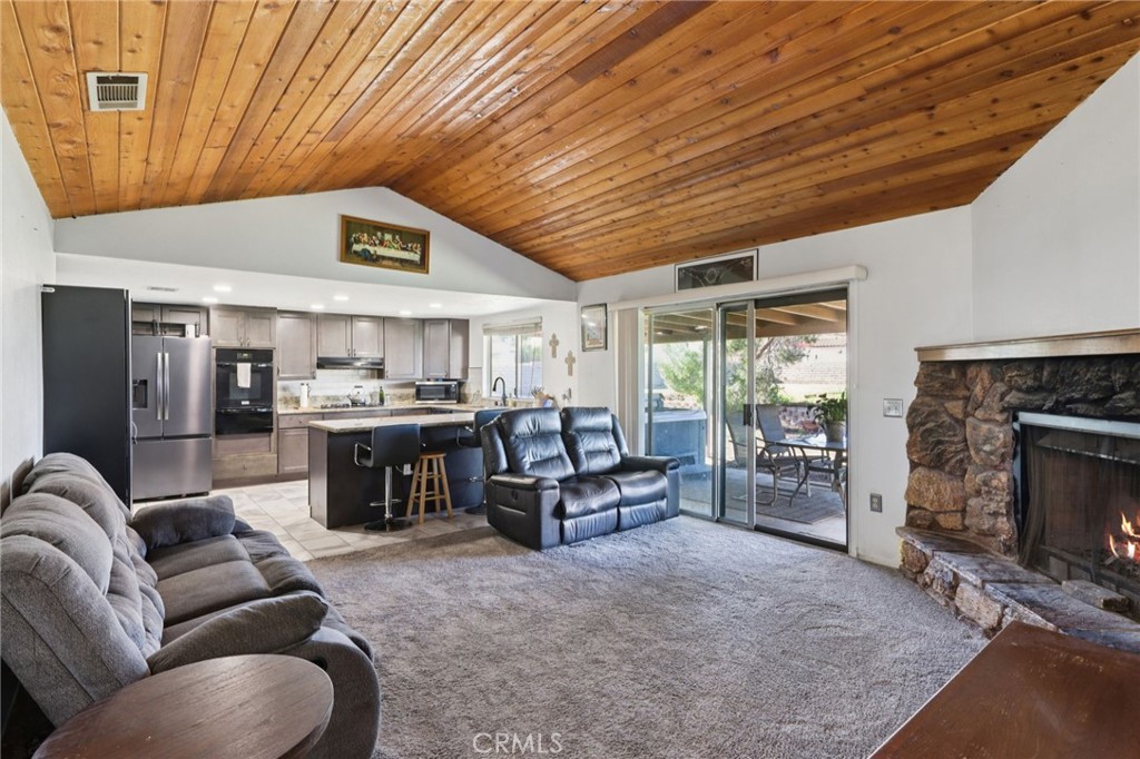 Mountain views from the front yard and nearly a half-acre of fully fenced land set the stage for this beautiful ranch-style home, offering space, privacy, and endless possibilities. Situated on a generous lot with RV parking and cross fencing, this property is ideal for those seeking room to roam, store toys, or create their own outdoor oasis. Inside, the inviting living room features a vaulted pine ceiling and a rock-surround fireplace with a raised hearth, creating a warm and welcoming focal point. A formal dining area sits just off the foyer, perfect for gatherings and everyday meals. The kitchen is outfitted with granite countertops and bar seating, offering both functionality and a seamless connection to the living spaces. Go outside to the covered back porch, an ideal spot for relaxing in the hot tub, dining al fresco, or entertaining guests. The expansive backyard is a blank canvas ready for gardens, recreation, or future improvements and includes a storage or hobby shed for added convenience. The home offers three bedrooms and two bathrooms, including a private primary suite with an en suite bathroom and a sliding glass door providing direct access to the backyard patio. Conveniently located near schools, Heritage Lake Park, and local markets, this property combines scenic views, generous land, and comfortable living in a desirable setting.