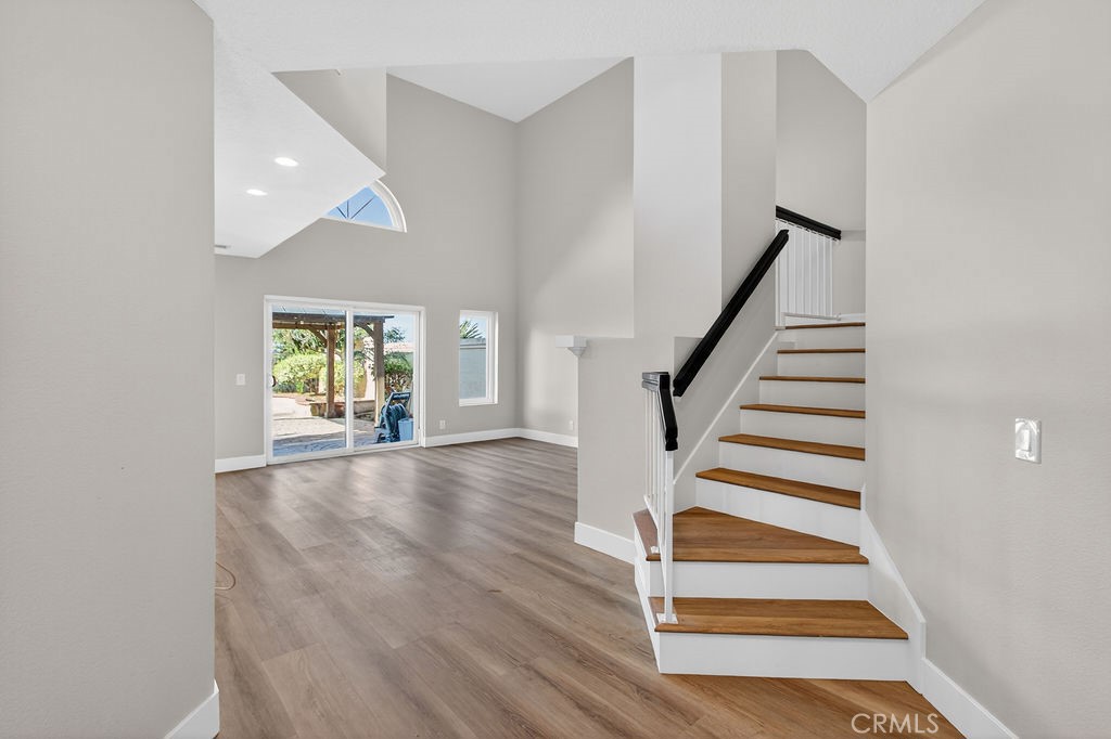 Welcome to your panoramic view home on Ruby Lane. This beautifully remodeled attached single-family residence offers sweeping city-light and golf course views from both the living room and the primary bedroom. The home features all-new cabinetry, quartz countertops, stainless steel appliances, luxury vinyl flooring downstairs, and brand-new carpeting in the upstairs bedrooms. The flexible floor plan includes three bedrooms and three bathrooms, with a convenient downstairs bedroom and full hallway bath, ideal for guests or multigenerational living. Upstairs, both bedrooms have their own private bathrooms, including the primary suite with stunning panoramic views. Enjoy the ease of low-maintenance outdoor living in the nicely sized backyard, complete with artificial turf, a detached pergola for shade, and a designated BBQ area ready for your personal setup. This attached single-family home shares just one common wall, offering privacy and comfort in a desirable setting.