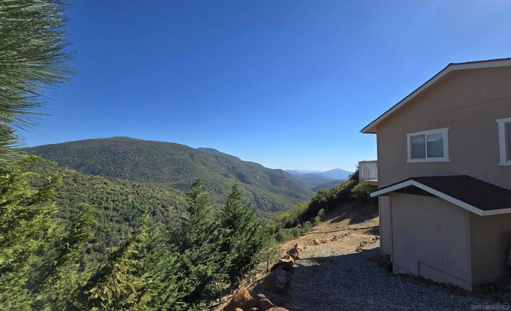Take a drive past a picturesque lake and up a mountain to a hidden road guarded by an electronic gate. High Hill is like no other off-grid road, with unparalleled views and breathtaking splendor. This home sits on the edge of a hill, surrounded by pine, manzanita, and cedar trees, and seems to float between the peaks. Cuyamaca Woods is an off-grid community with several sections all nestled onto the ridges and bluffs of North Peak in Julian. The High Hill cabin is a well-designed, comfortable, and thoughtfully built 2-bedroom 2-bath home. The home is heated by a Propane wall heater and a wood stove. Cooling winds are frequent each season, and convenient ceiling fans for more circulation on warm days. Step out onto the spacious deck that runs the length of the home and wraps to the entry. Spend time watching graceful hawks glide and hearing the wind through the pines. The full kitchen has a view into the canyon, plenty of storage, and all the amenities to cook up a gourmet dinner for every season. The important details to make mountain life comfortable have been added with owned solar power, a 12,000-watt generator for backup, a private well and 5,000-gallon water tank, as well as a large under-house storage area. *The known Fees associated with this community are through the Cuyamaca Fire Safe Council. *A non-mandatory suggested annual contribution of $125 goes towards maintaining gates and roads.