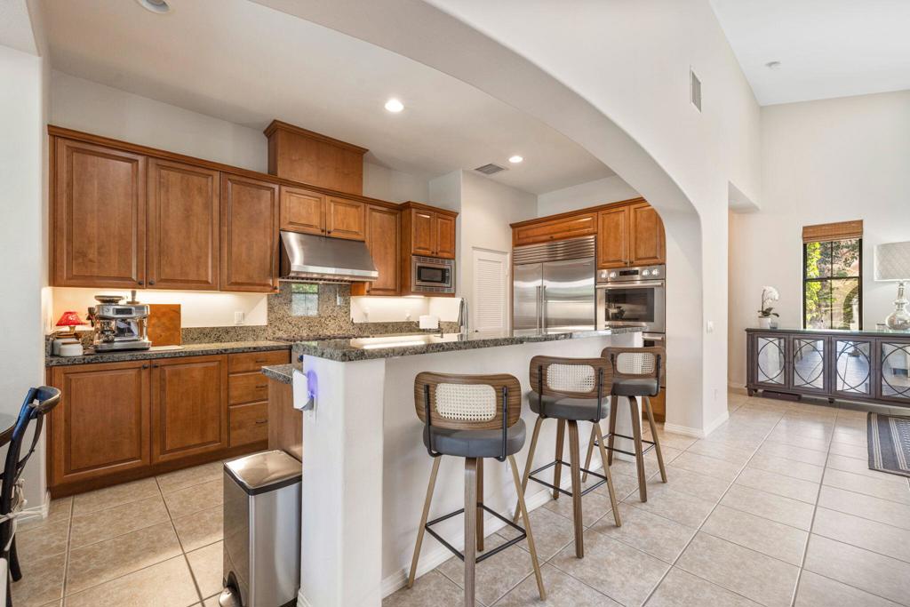 Welcome to La Cantera,a private gated enclave of beautifully constructed homes in the heart of La Quinta. Enter through a charming courtyard entry and immediately experience the inviting warmth of this thoughtfully upgraded residence,where fresh interior paint,brand new carpeting, & lush landscaping create a true sense of home.Offering 3 bedrooms, including a private detached casita, and 3.5 bathrooms,this home is designed with both comfort and entertaining in mind.The open-concept floor plan seamlessly connects the main living spaces, enhanced by tile flooring throughout the common areas and a welcoming great room with fireplace.At the center of the home, the chef’s kitchen features granite slab countertops,a large island with breakfast bar, breakfast nook & formal dining area. High-end appliances include a 48” Sub-Zero built-in refrigerator, Thermador 6-burner gas cooktop with range hood, double convection ovens & a Bosch dishwasher. Recent upgrades such as a new kitchen faucet, garbage disposal & updated electrical outlets add modern convenience,while wet bars & wine refrigerators in the dining area,upstairs bonus room, & casita elevate the home’s entertaining potential. Designed for unforgettable gatherings,the indoor-outdoor flow is effortless.Guests can move from the spacious great room to the private backyard featuring a sparkling pool & raised spa with waterfall, surrounded by lush landscaping & custom lighting throughout the home & patios.Multiple fireplaces-located in the great room,backyard,& upstairs terrace-add ambiance to every setting.Upstairs, a large bonus loft/TV room with surround sound & wet bar opens to a terrace & viewing deck with stunning Santa Rosa Mountain views.The resealed balcony deck provides the perfect setting to unwind or entertain under the desert sky.The primary suite offers a peaceful retreat with dual vanities,soaking tub, separate shower,generous his-and-her closets,a dedicated dressing area.A secondary bedroom or den includes its own ensuite bath,while the detached casita provides ultimate privacy for guests.Additional upgrades include two American Standard Platinum A/C systems,new Pentair pool pump,spa heater & filter,newer tankless water heater, and a new garage door system. The home also includes an ADT security system & an L2 EV charger in the garage.With a low HOA of $360/month this home offers both convenience and value- desert living at its best! Furnishings negotiable.
