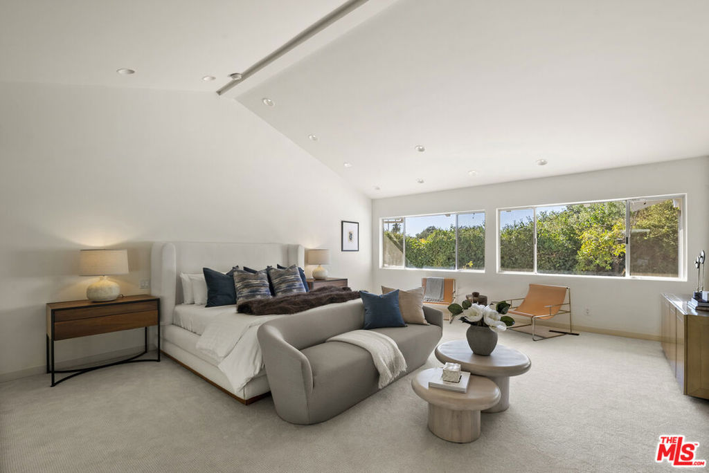 Situated on one of the most prestigious streets in Beverly Hills, this predominantly single-story home spans 5,200 square feet of refined interiors, set on a 26,607-square-foot lot. The home features five spacious en-suite bedrooms, six bathrooms, and soaring 14-foot ceilings that enhance the open, airy ambiance. Floor-to-ceiling windows on both sides of the living areas invite abundant natural light while framing views of the surroundings. A large circular driveway leads to a three-car garage, ensuring convenience and elegance from the moment you arrive. The backyard is a private oasis, complete with a pool/spa and ample space for outdoor living and entertaining. This is a rare opportunity to own a home in one of Beverly Hills’ most sought-after locations. Also available for furnished for $35,000/mo and for sale for $10,995,000.