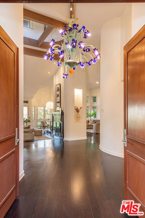 Welcome to 851 Glenmont Ave in the prestigious enclave of Little Holmby in Prime Westwood Village. This four bedroom, five bathroom architectural masterpiece was designed by the acclaimed architect Robert Shachtman, AIA. Soaring ceilings and grand windows create an abundance of natural light and quintessential charm in this beautiful family home that sits up a private gated driveway on an apx. 14,000 sq.ft. lot. The open floor plan offers three bedrooms and four bathrooms on the main level complemented by a diverse space ideal for a home office or quarters for a housekeeper or nanny. The primary suite radiates Old Holmby charm and features dual custom closets, a fabulous seating area, an intimate fireplace and elegant bath. The kitchen is perfect for family gatherings, equipped with ample seating at the bar, a large pantry with extensive storage space, and seamless connection to a great-room-style social area, a breakfast nook, living room, and family room all overlooking the tree-lined backyard and pool area. The lower floor includes a media room, a bonus room that is great as a home gym, and another bedroom complete with an attached bathroom. Other luxurious amenities include a solar-heated pool, a spacious upper terrace, a cozy outdoor fireplace and built-in barbecue area. The home has been well-maintained and is in great condition. Prime location with good schools, 2 car garage with ample driveway parking behind gates. Two light fixtures are to be excluded from the sale.
