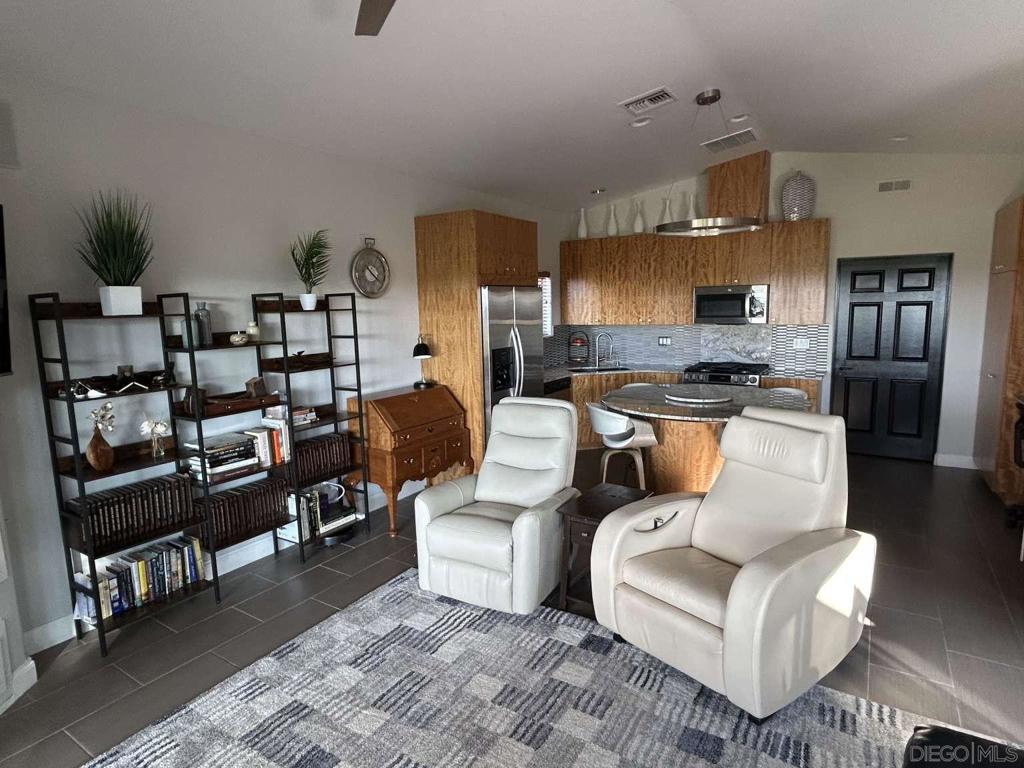 This property is located in the Vineyards Luxury Motorcoach Resort. Amenities include a living room with gas fireplace, full kitchen with granite countertops, stainless steel appliances, laundry area, one bathroom with walk in shower and one bedroom. An attached one car garage with additional space to park a golf cart. Large RV pad for up to a 45′ class A motor coach with full hookups. Professionally installed California closets in the laundry and bedroom area, granite countertops in the kitchen and bath with ceiling fans in the living room and bedroom. Additional storage added with wine fridge and bar cabinets. Tile floor throughout. The exterior has roll down security shutters on glass doors and windows. Back patio provides beautiful views of the mountains, outdoor gas fireplace, gas BBQ, enclosed decorative rock wall and new in 2023 high quality shade sails. The Vineyards Luxury Motor Coach Resort is a unique gated community that you can enjoy even if you do not own a Motor Coach. It has 2 pools with hot tubs, pickleball courts, workout facilities with all you need for fitness. It also has a beautiful clubhouse and two BBQ areas for gatherings.