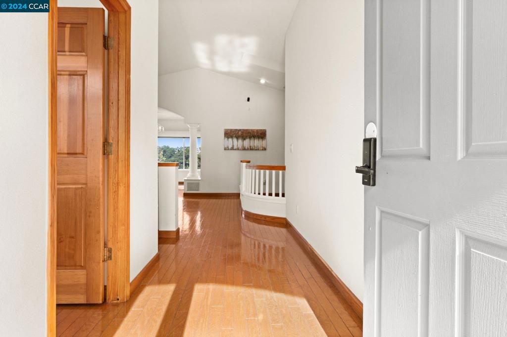 Beautiful Hillcrest Heights home w/4 BRs, 3 BAs w/2549 sq. ft. Step into light-filled, hi ceiling palatial space & gaze straight out to panoramic valley & hill views from every window. Kitchen has recessed lights, an island under an efficient hanging ceiling pot rack. This open concept space adjoins to eat-in dining area & spacious family rm. Enjoy gorgeous views & step out onto the deck for morning coffee. There is also a formal living rm & dining rm. Solid hardwood floor thruout upstairs. There is a spacious BR on the main floor & full BA. 3 BRs are downstairs w/primary BR with a spacious adjoining retreat w/ample built-in cabinets. The primary en suite bath has a lg tub & shower stall, dual sinks & spacious walk-in closet. The primary BR enjoys its own private deck. Two add’l spacious BRs are nearby & laundry rm w/it’s own entrance from the backyd. Built-in desk area in the hall provides efficient use for office space. Intercom system thruout. Over 9000 sf lot w/fruit trees & space to create your own oasis. Cul-De-Sac location. Close to I80, Hwy 24, BART, shopping, restaurants, parks & nearby walking trails.