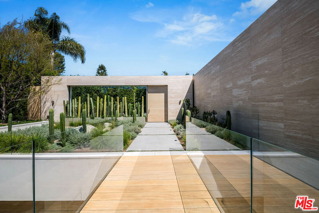 Experience a heightened level of contemporary luxury in this newly constructed estate nestled within the coveted Bird Streets. Crafted with exceptional materials and finishes, this residence defines elevated Los Angeles living, offering sweeping jetliner views from Downtown to the Pacific Ocean. Designed by Paul McClean, built by Dugally Oberfeld, and appointed with interiors by Marmol Radziner, the home presents an unparalleled level of design and amenity. Encompassing approximately 15,200 square feet with five bedrooms and nine baths, the estate provides generous accommodations for entertaining, guests, and staff. A gated drive ensures privacy and security, leading to a subterranean six-car garage. Arrival begins at a serene, walled desert-inspired courtyard, where a bridge extends above the lower-level pool, setting a dramatic tone. Outfitted with advanced smart home technology and expansive automated glass walls, the interiors seamlessly capture the surrounding vistas. The main level features a sophisticated living room with fireplace, formal dining room, two powder rooms, an entertainer’s kitchen with eat-in island and breakfast area, and a secondary prep kitchen equipped with Wolf and Sub-Zero appliances. Two guest suites accompany a stunning primary suite complete with panoramic views, custom walk-in closet, and a luxurious marble bath with sauna. Indoor spaces transition effortlessly to an expansive terrace with a sunken fire feature, built-in seating, and a striking zero-edge pool and spa. The lower level, accessed by a floating staircase or elevator, reveals a true entertainment and wellness retreat, including a second pool, fire feature, expansive family room with bar and fireplace, glass wine display, game room, covered patio with spa, theater, gym, and dedicated wellness suite with massage room, shower, and sauna. Additional amenities include two guest suites, a powder room, and laundry. This exceptional hillside sanctuary is moments from Sunset Boulevard and the finest dining, shopping, and nightlife Los Angeles has to offer.