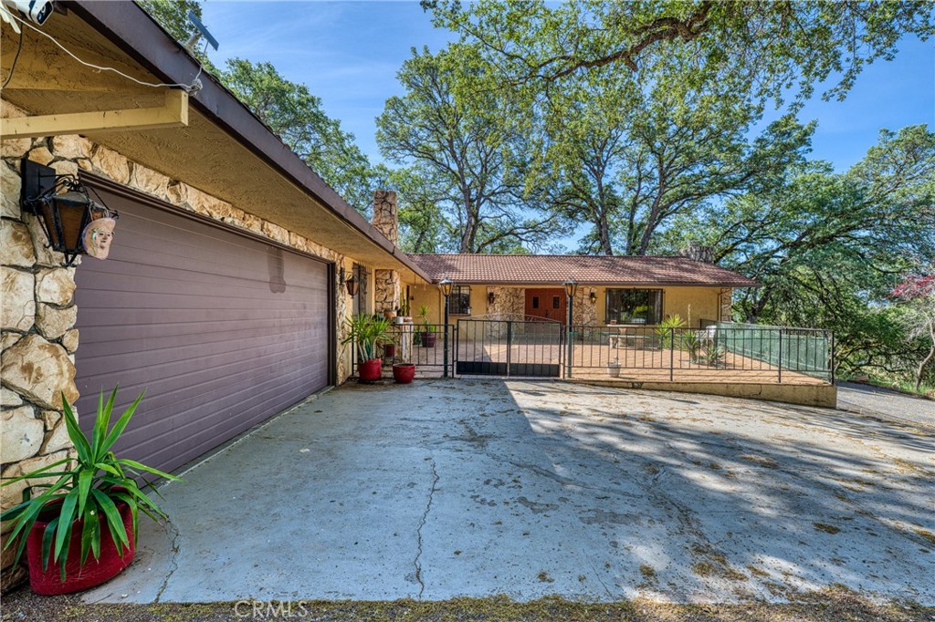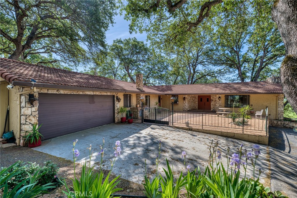 Escape to your own private oasis nestled on over five acres of scenic, fenced and cross-fenced land. This unique Spanish-inspired home welcomes you through an electric solar gate and along a lovely paved driveway, leading to a peaceful retreat designed for comfort, creativity, and country living. The property offers an impressive array of amenities, including a large barn/shop, multiple storage sheds, a travel trailer for storage, and a single-wide home ready for renovation or guest use (does need work). The beautifully landscaped yard enjoys ample shade from mature trees and features both a tiled, fenced front patio and an expansive wood deck and brick patio in the back—perfect for relaxing or entertaining. Step inside to discover warm custom woodwork, wood-laminate flooring, and abundant natural light. The inviting living room showcases a built-in fireplace, kerosene monitor heater, ceiling fan, and elegant wood beams. The spacious kitchen is a cook’s delight with a central island featuring an electric glass cooktop and indoor griddle, tiled countertops and flooring, a pantry, dual sink, oven, microwave, and generous cabinet space. The adjoining dining area offers easy access to the back deck through sliding glass doors. A versatile laundry/bar room includes a closet, sink, baseboard heater, and sliding door to the patio—ideal for use as a fourth bedroom, guest suite, or hobby space. It also provides access to a convenient ¾ bath with a walk-in shower. Down the hall, a full guest bath and guest bedroom offer comfortable accommodations for family or visitors. The primary suite is a true sanctuary, featuring vaulted ceilings, a walk-in closet with custom shelving, fireplace, monitor heater, and two sliding doors opening to both the front and back patios. The luxurious ensuite bathroom includes dual island sinks, two toilets, a deep soaking tub, walk-in shower, and an expansive vanity with built-in storage. Additional amenities include a hot tub room accessible from the suite, central heat and A/C, tiled roof, iron security bars on windows, exterior security cameras, public water, and a septic system. Experience the tranquility, charm, and functionality of this exceptional ranch property—offering a harmonious blend of rustic character and modern comfort in the heart of Upper Lake. (Buyer to verify square footage and age of home.)