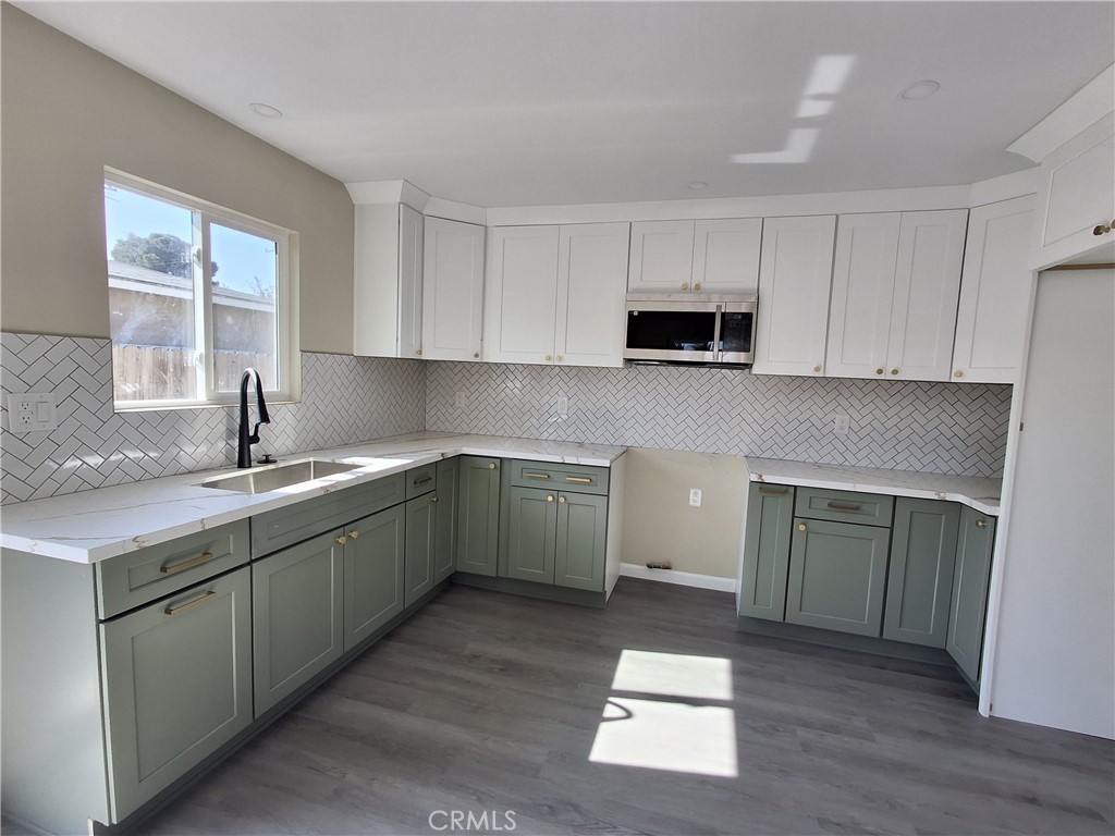 Make this beautifully updated gem your new home! This charming gorgeously remodeled 2 bedroom and 1 bathroom features a 2-car attached garage and a generous driveway. Home is the perfect blend of modern updates and classic appeal. Situated in a gated community and property has a brick fence. Inside, you’ll find a fresh and stylish interior with new dual-pane windows & sliding door, wood laminate flooring, and new interior and exterior doors throughout. The home boasts new kitchen cabinetry, elegant quartz countertops, and upgraded plumbing, electrical fixtures and ceiling fans. Completely remodeled restroom with glass door. Quick connections to the freeway for smooth commuting.