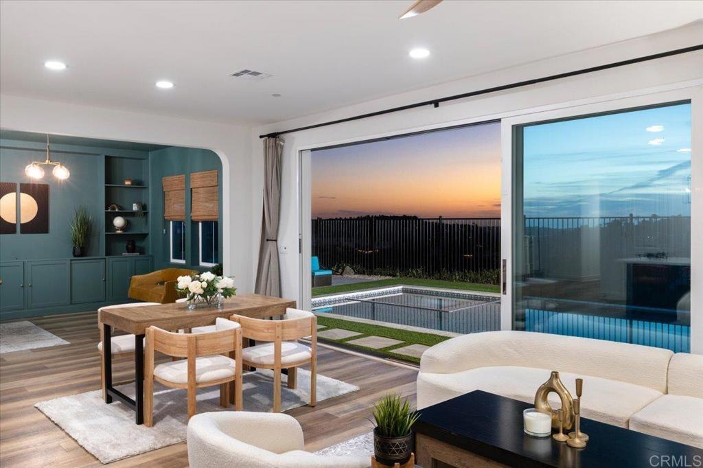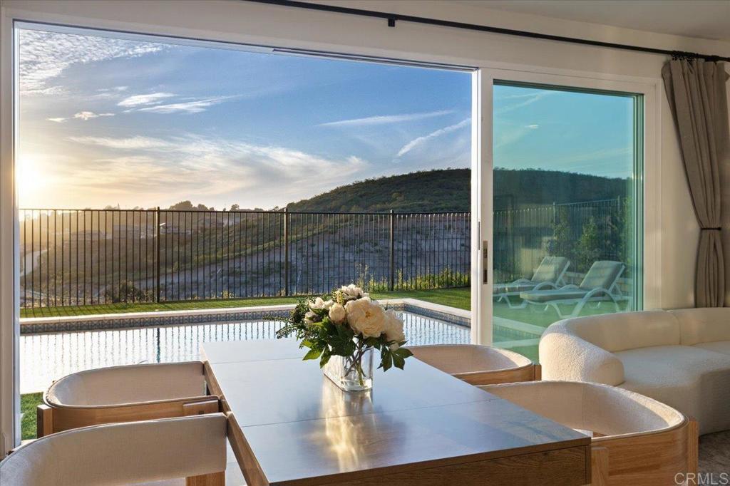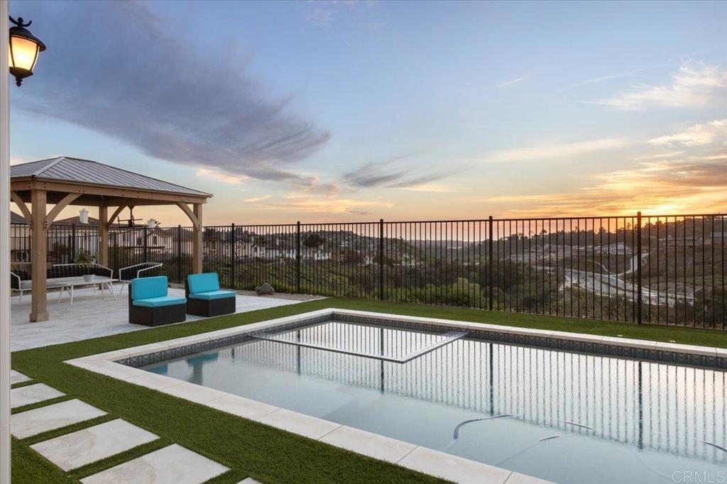 From the moment you step through the front door, the home’s California Modern aesthetic pulls your gaze through the open-concept living space and out across the three-panel sliding glass doors to a backyard that feels like a private resort. This is the heart of the home, where an unobstructed western view offers front-row seats to brilliant sunsets and a distant peek of the Pacific. The saltwater pool and hot tub are powered by a high-efficiency Pentair system, allowing the spa to heat to the perfect temperature almost instantly. To the side, a permanent gazebo pre-plumbed for a television serves as an outdoor living room, creating a seamless flow for entertaining that captures the true essence of Southern California living. The interior functionality matches the brilliance of the outdoor space, prioritizing a layout that grows with a modern family. The kitchen is a chef’s sanctuary, featuring a premium Wolf stove and LG refrigeration that anchors the open-concept main floor. For families needing flexibility, the first floor includes a private bedroom and full bathroom, ideal for a guest suite or a quiet home office. Upstairs, the home transitions into a dedicated space for rest and play, centered around a spacious loft that separates the primary suite from the three additional bedrooms. The primary itself is a spa-inspired escape, featuring a standalone soaking tub, a seamless walk-in shower, and an expansive walk-in closet. Beyond the aesthetics, the home is a model of long-term efficiency, fully equipped with an owned 18-panel, 6.3 Kw solar system. Life in the Ridgeview community of Santa Fe Hills offers a rare balance of nature and neighborhood convenience. You are less than a mile door-to-door from top-rated Paloma Elementary, making the morning school run a scenic walk through the hills. This location is a haven for outdoor enthusiasts, with immediate access to miles of hiking trails and parks that feel tucked away from the hustle and bustle, yet you remain moments from the continued growth of downtown San Marcos, Kaiser, and premier shopping and dining. This is more than just a home; it is a meticulously designed sanctuary where space, privacy, and the beauty of the California coast come together.