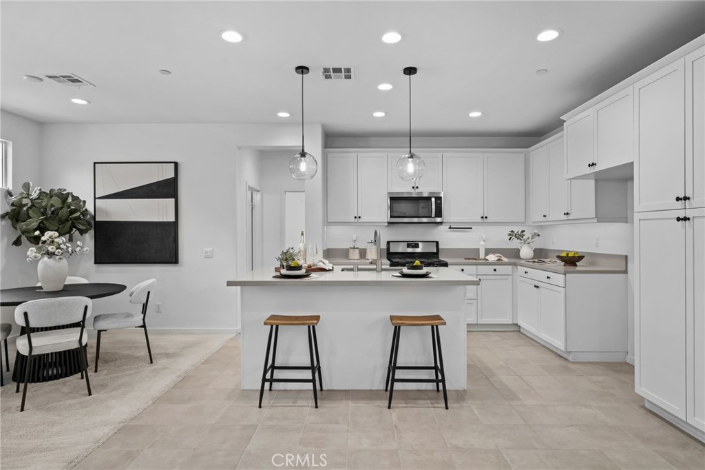 Offering the privacy of a single-family residence with the ease of a low-maintenance lifestyle, welcome to 9463 Retreat Place. A detached home offering a true retreat within The Resort. Step into the main level that feels comfortable and connected, with high ceilings and recessed lighting giving the space an airy, open feel. The kitchen is well-appointed with quartz countertops, white shaker cabinets, stainless steel appliances, and a center island that works equally well for morning coffee or hosting. The primary suite offers a walk-in closet and genuine separation from the two additional bedrooms, a layout that adapts easily to growing families, a home office, or visiting guests. Two and a half baths, a tankless water heater, and a 240V EV charging outlet round out a home that’s been thoughtfully set up for everyday life. Life at The Resort revolves around community. Residents enjoy a pool, fitness center, business center, conference rooms, BBQ areas, fire pits, bocce ball and cornhole courts, a dog park with wash station, and an event center that brings the neighborhood together throughout the year. Walkable cafés including Teaspoon boba shop and a Cassidy’s Corner Bagel Cafe are just steps away, the kind of convenience that becomes part of your daily routine quickly. Getting around is straightforward, too. You’re approximately 5 minutes from the Rancho Cucamonga Metrolink Station, the I-10 and I-15 Express Lanes, which means Downtown Los Angeles and Orange County is accessible for a morning commute. Victoria Gardens, Top Golf, Haven City, Quakes Stadium, and Ontario International Airport are all within a short drive for dining, entertainment, or a quick trip out of town.