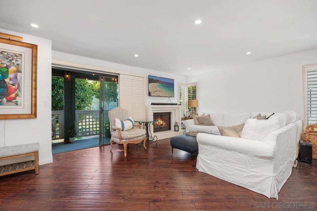 Rarely available elevated corner townhome with only one shared wall, in the highly desirable Spindrift Del Mar community. This home boasts tasteful upgrades, including a beautifully remodeled kitchen with new cabinets, quartzite counters, updated bathrooms, new copper plumbing, a new electrical panel, and new LVP flooring. Enjoy the private deck off the living room, perfect for relaxing, and a spacious living room featuring a gas and wood-burning fireplace. The Spindrift Del Mar community, known for its timeless modern architecture, is perched just above the Flower Hill shopping and dining plaza-steps from Whole Foods, amazing restaurants, and boutique shops. It’s just minutes to the beach, Del Mar Fairgrounds, and award-winning schools. This townhome offers two ensuite bedrooms, 2.5 bathrooms, 1326 sq.ft of living space, central air conditioning, and direct access to an oversized 2-car garage with epoxy floors, a work room and laundry. The HOA includes water, trash, two pools, a spa and exterior building maintenance. With all these amenities and an unbeatable location, this home is a must-see!
