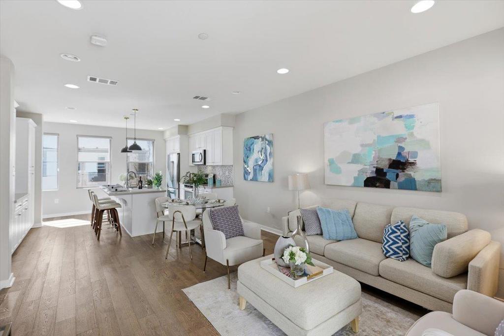 Discover your new haven in Orchard Park! Built in 2016 and meticulously maintained, this beautifully designed and upgraded townhome is move-in ready, complete with walking trails, a clubhouse, and ample guest parking. Step inside to find gleaming engineered wood floors that flow throughout an open-concept living area, where natural light pours in through triple-pane windows and dual-pane sliding doors adorned with designer shades, super quiet and private. The gourmet kitchen has a large island, premium quartz countertops, high-end cabinetry, and SS appliances. Upstairs offers the luxury of two master suites, while the ground-floor room provides a private retreat for in-laws or guests. All 3 bedrooms have private full bathrooms. Modern comforts abound in this contemporary build, including recessed lighting, multi-zone A/C with smart thermostats, a tankless water heater, and an attached two-car garage. Centrally located near tech giants like Nvidia, Google, and Amazon, and within easy reach of top-rated schools, BART, and major highways, this home puts the best of Silicon Valley at your doorstep. Stroll to nearby shopping at Sprouts, H-Mart, and 99 Ranch, or enjoy the local golf course and parks. Don’t miss this rare opportunity to live in the sophisticated heart of Orchard Park!