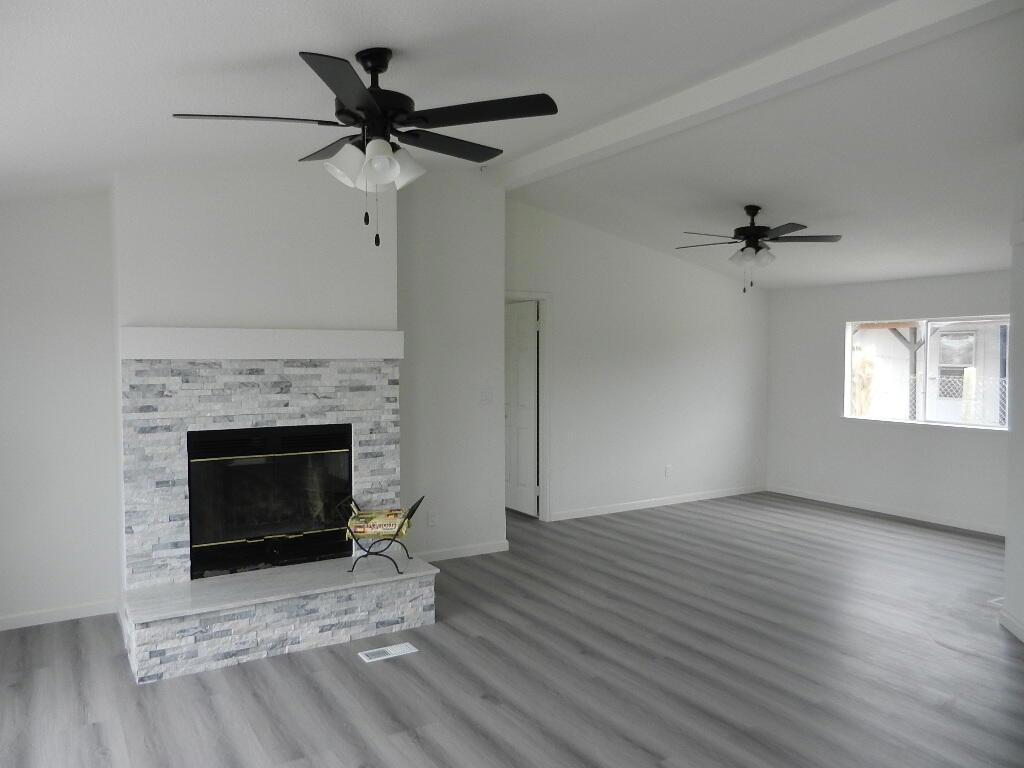 This completely updated and remodeled manufactured home is situated on a permanent foundation, offering both comfort and durability. With a generous 1,790 square feet of living space, and a fireplace, the home features three spacious bedrooms and two modern bathrooms, making it ideal for families or those seeking extra room. The interior boasts a central air conditioning system for year-round comfort. The entire home has been recently painted both inside and out, providing a fresh and inviting atmosphere. New laminated waterproof flooring extends throughout the living areas, ensuring both style and practicality. Significant upgrades include a brand-new asphalt shingle roof, updated ceiling lights, and new light and fan fixtures in every room. The kitchen has been tastefully renovated with updated cabinetry, quartz countertops, and a stylish backsplash. Additional enhancements include a new garbage disposal and a modern electric water heater. The meticulous attention to detail and high-quality improvements throughout the home are evident. To truly appreciate the exceptional craftsmanship and thoughtful updates, this home must be seen in person.