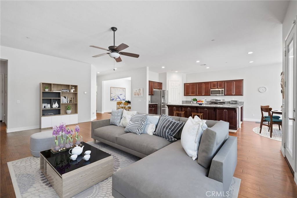 Experience the ultimate living in the prestigious Four Seasons 55+ community, where every day feels like a vacation. Enjoy access to a resort-style clubhouse, sparkling pool & spa, fitness center, tennis courts, scenic walking trails, an on-site salon, and an endless calendar of social clubs and activities. This beautifully maintained 2B 2.5B home plus office offers 2,461 sq. ft. of thoughtfully designed living space. The open split-wing layout ensures privacy while providing the perfect flow for entertaining or quiet relaxation. Inside, you’ll find rich wood-look flooring, a formal dining rm, and kitchen with granite countertops, bar seating, and abundant cabinetry. The primary suite offers dual sinks, a soaking tub, separate shower, and a walk-in closet you’ll love. Additional features include a tankless water heater and an oversized garage with space for storage, or even a golf cart. The large backyard is ready for you to create your ideal outdoor retreat.